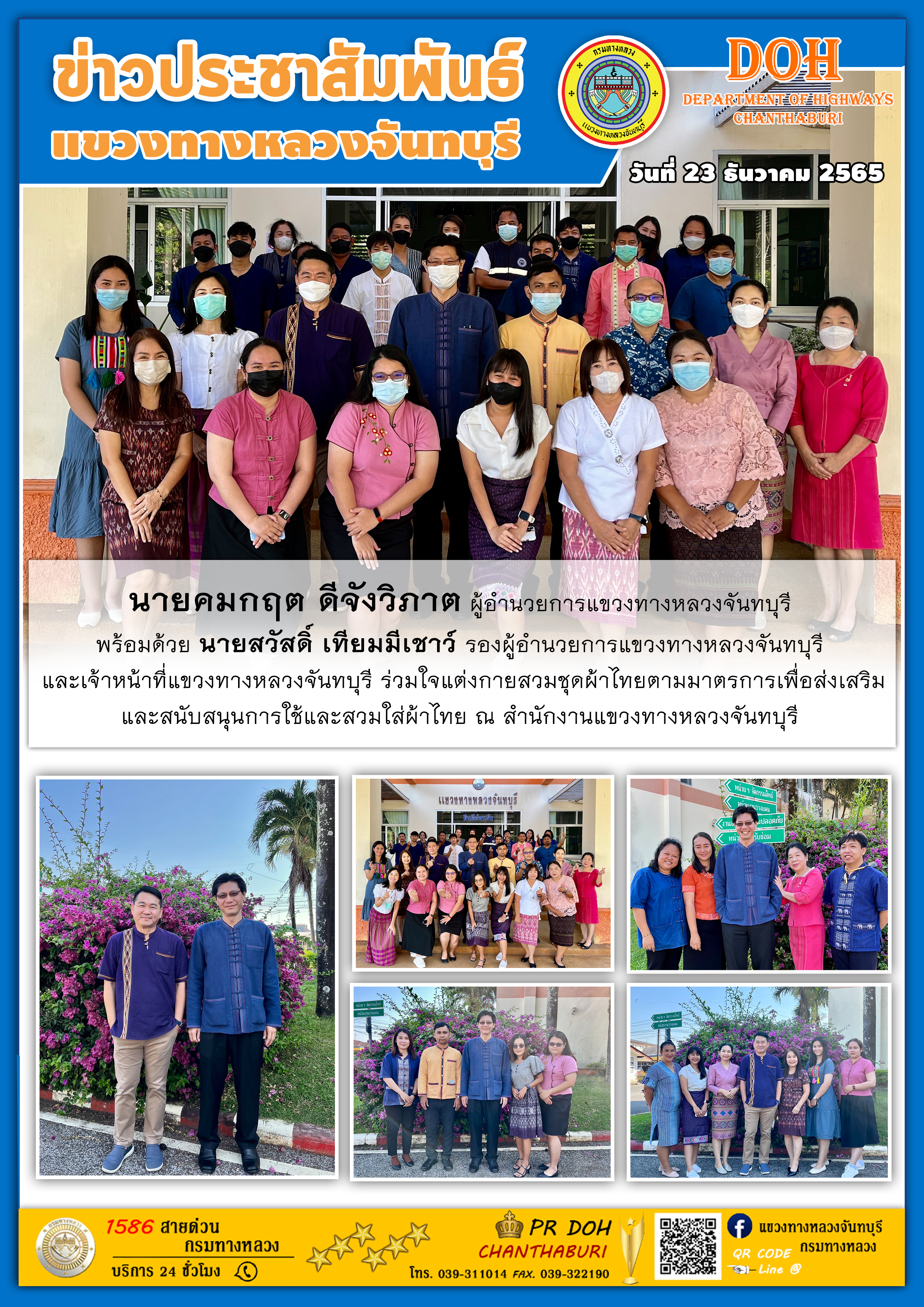 แขวงทางหลวงจันทบุรี ร่วมใจแต่งกายสวมชุดผ้าไทยตามมาตรการเพื่อส่งเสริม และสนับสนุนการใช้และสวมใส่ผ้าไทย