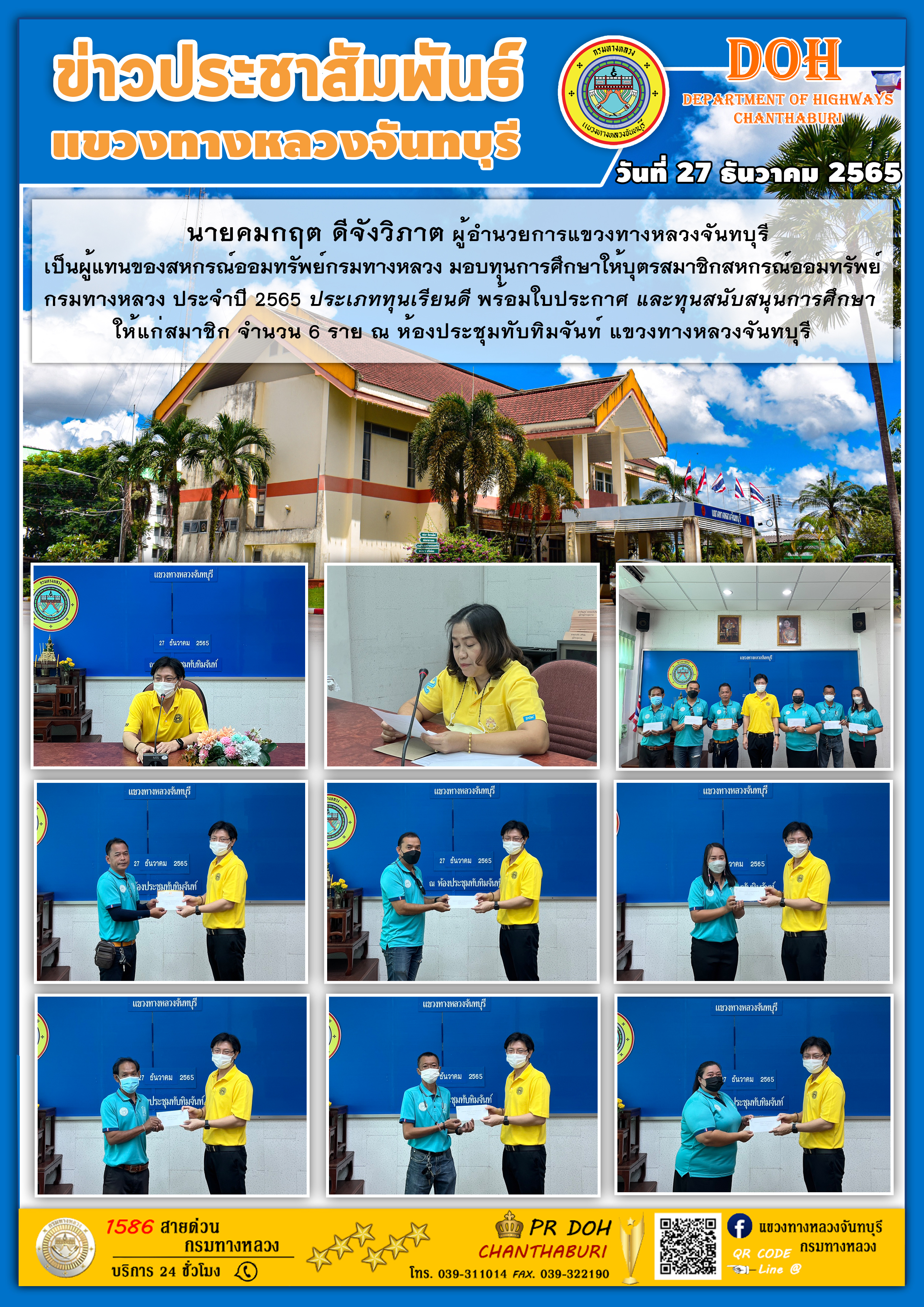มอบทุนการศึกษาให้บุตรสมาชิกสหกรณ์ออมทรัพย์ กรมทางหลวง ประจำปี 2565 ประเภททุนเรียนดี พร้อมใบประกาศ และทุนสนับสนุนการศึกษา