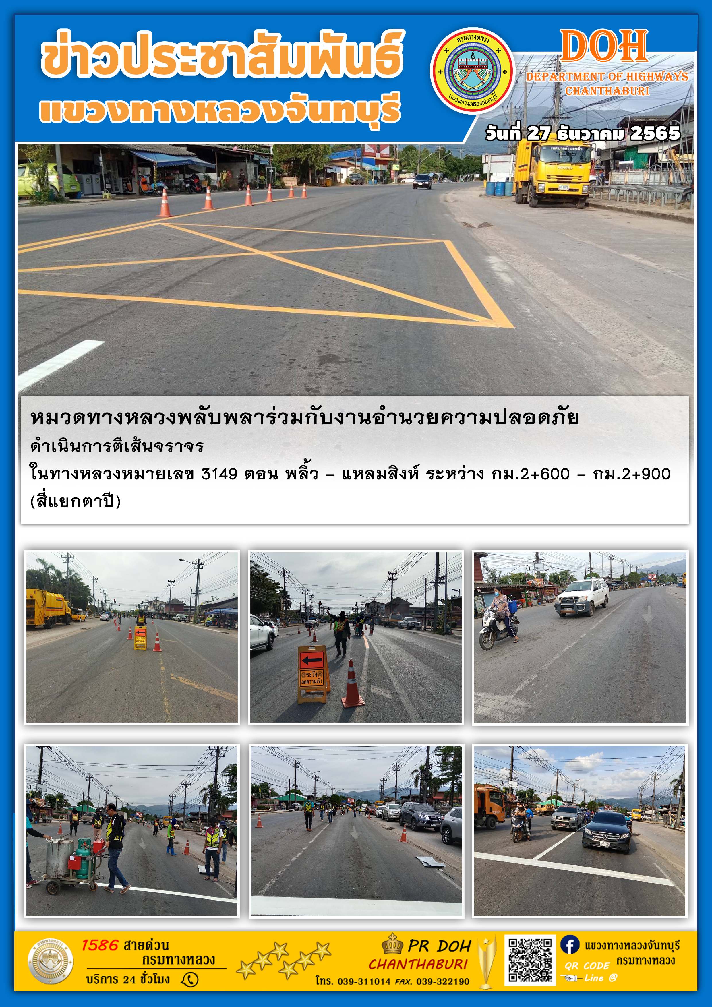 หมวดทางหลวงพลับพลาร่วมกับงานอำนวยความปลอดภัย ดำเนินการตีเส้นจราจร