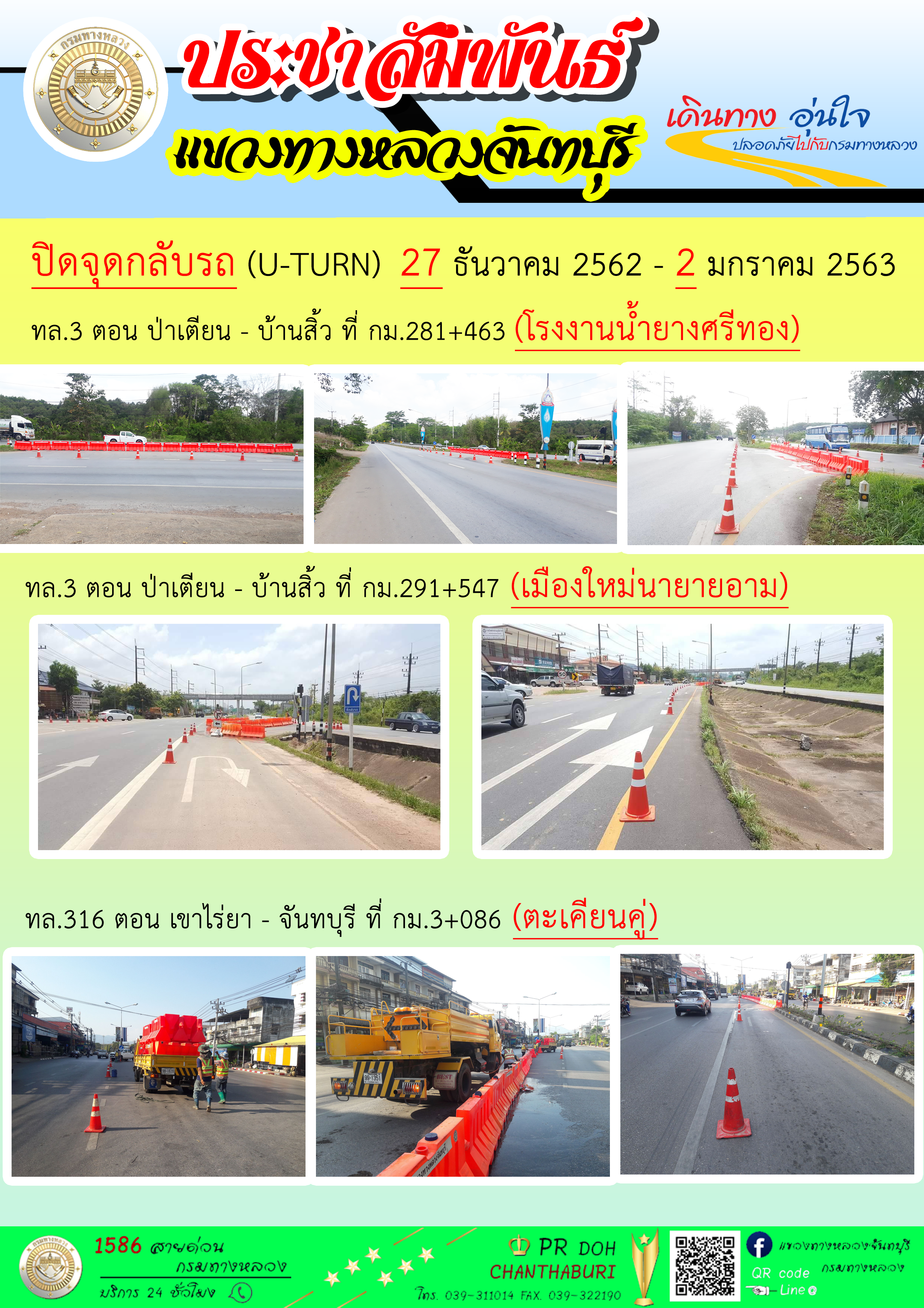 ปิดจุดกลับรถ 27 ธ.ค. 63 ถึง 2 ม.ค.63