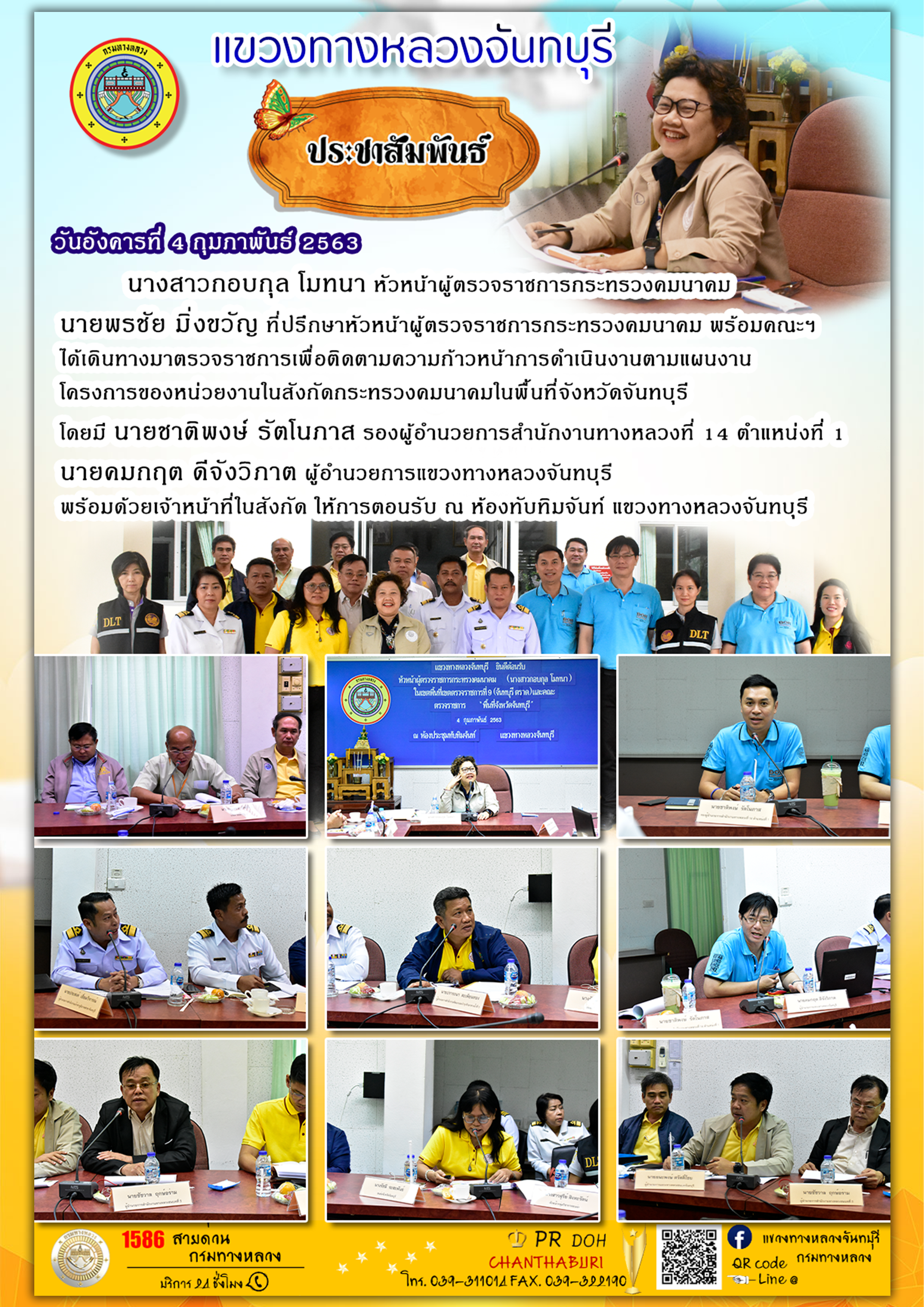 ตรวจราชการเพื่อติดตามความก้าวหน้าการดำเนินงานตามแผนงาน โครงการของหน่วยงานในสังกัดกระทรวงคมนาคมในพื้นที่จังหวัดจันทบุรี