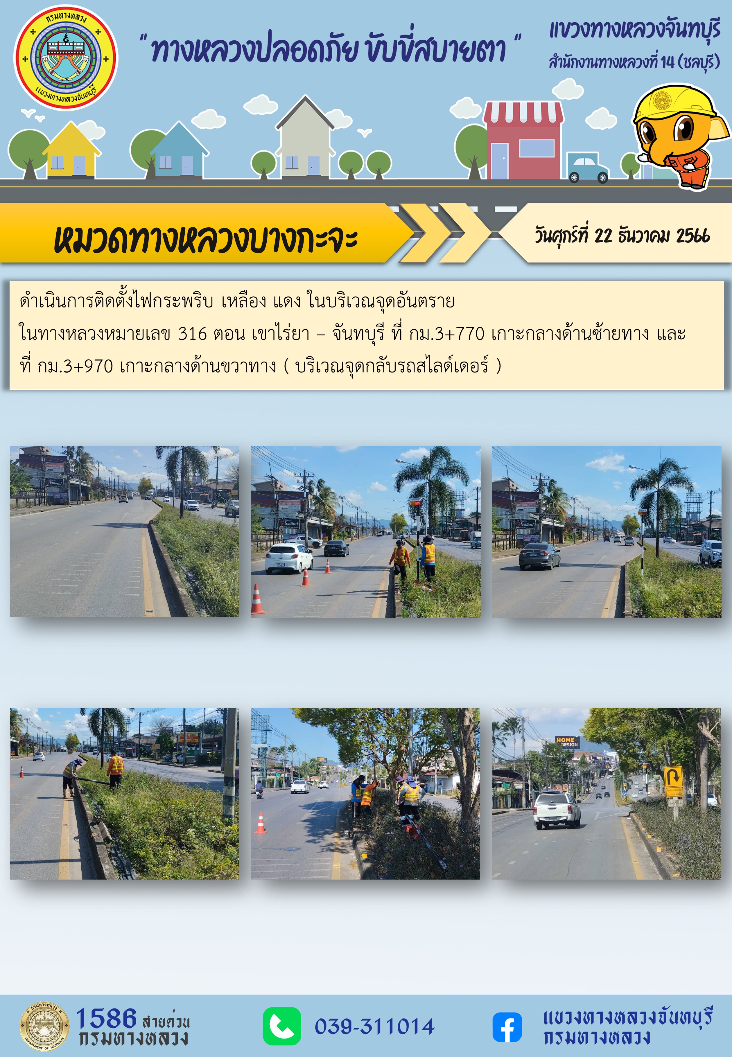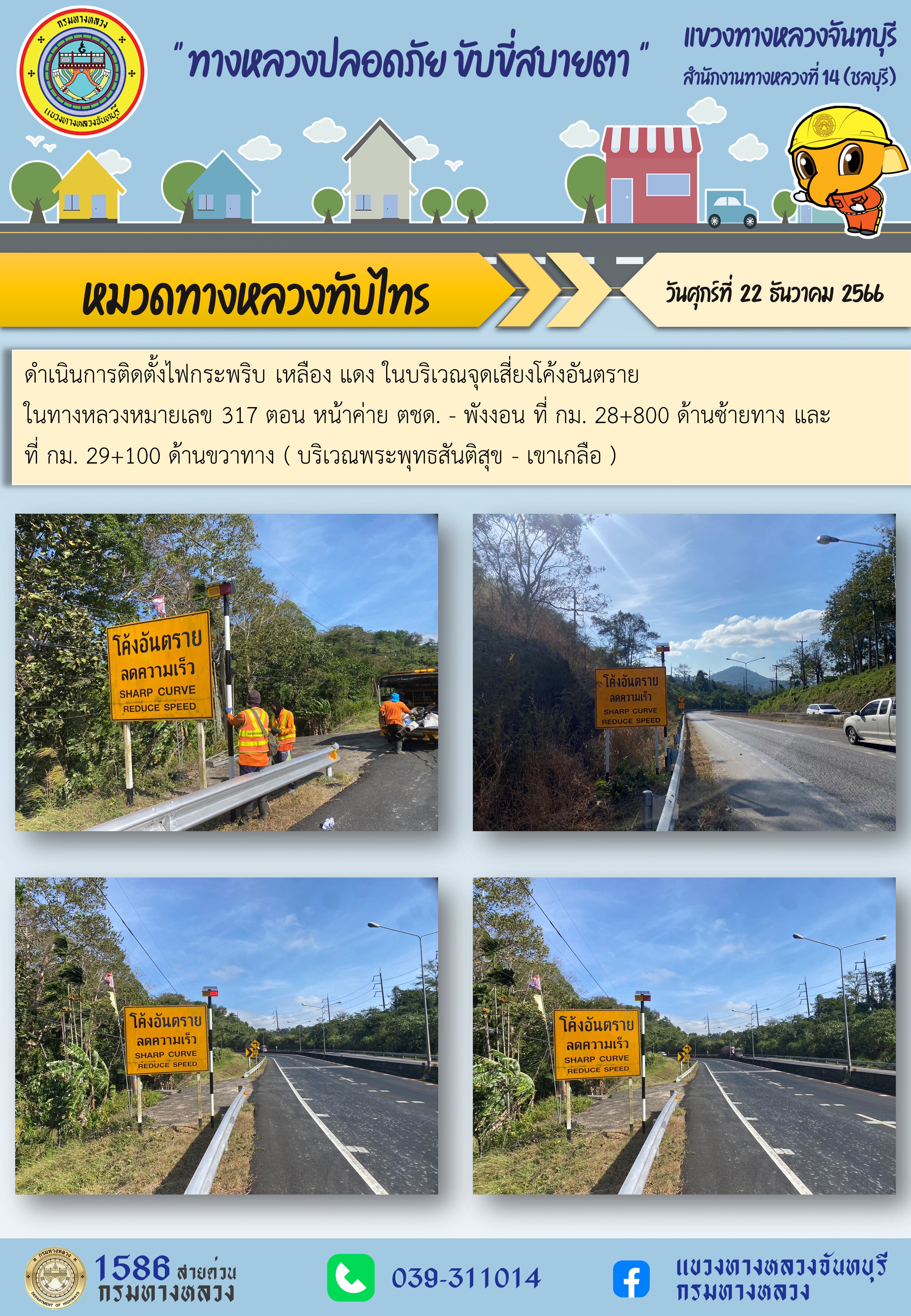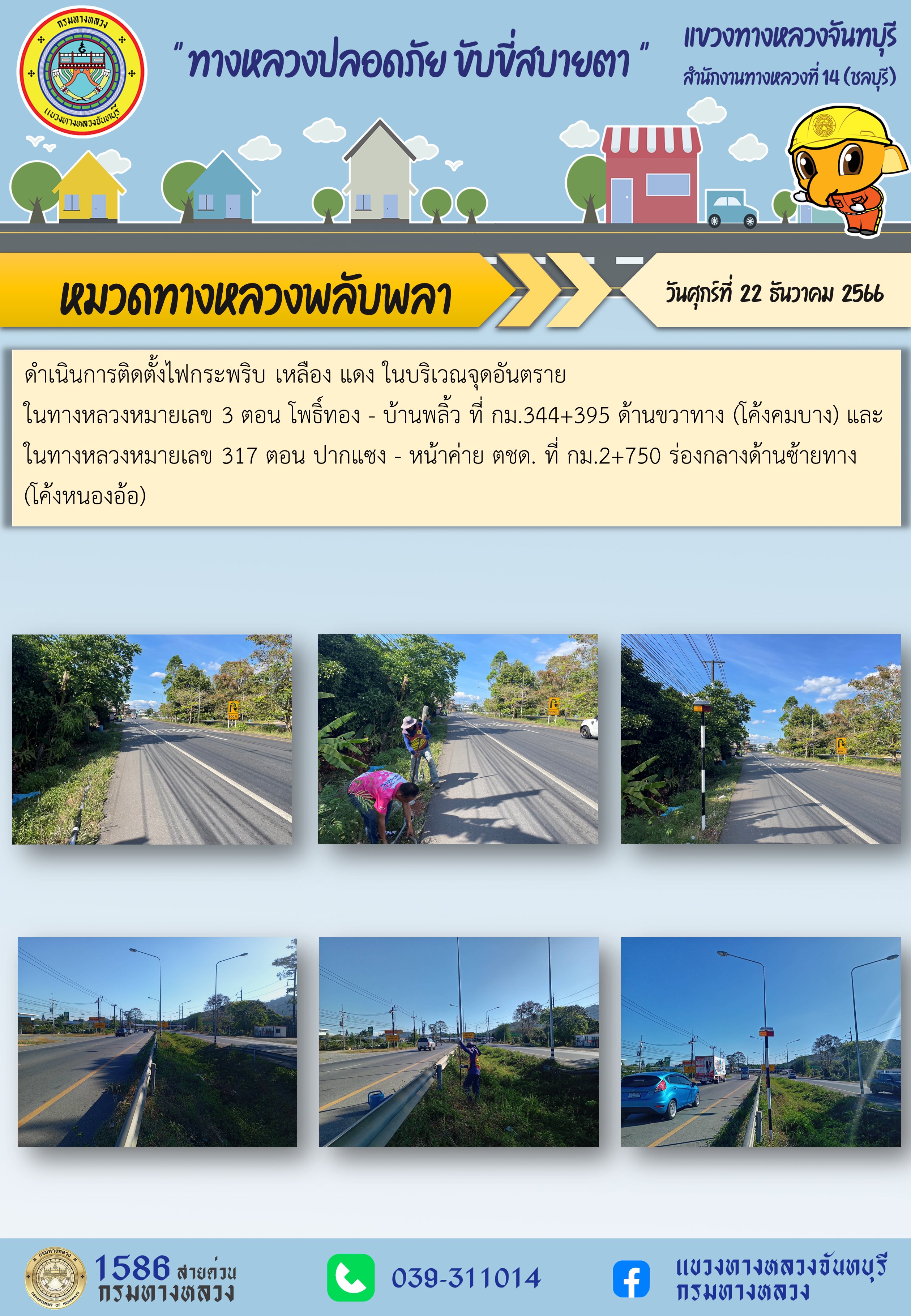 โดย หมวดทางหลวงท่าใหม่ดำเนินการติดตั้งไฟกระพริบ เหลือง แดง ในบริเวณจุดอันตราย