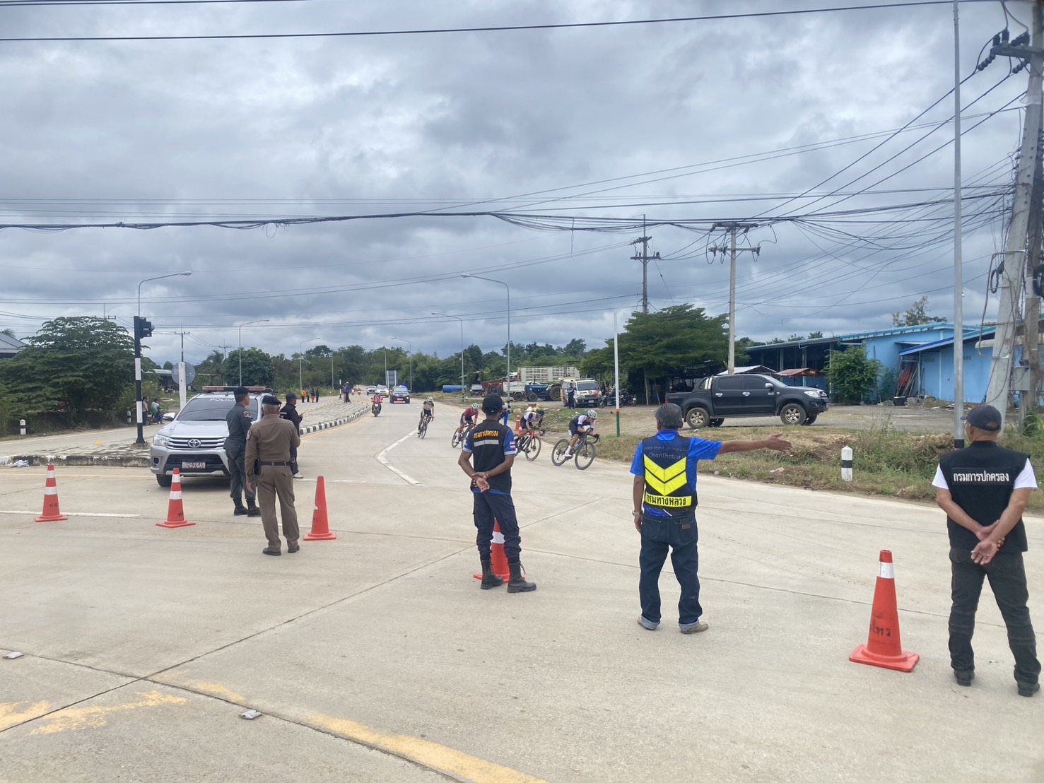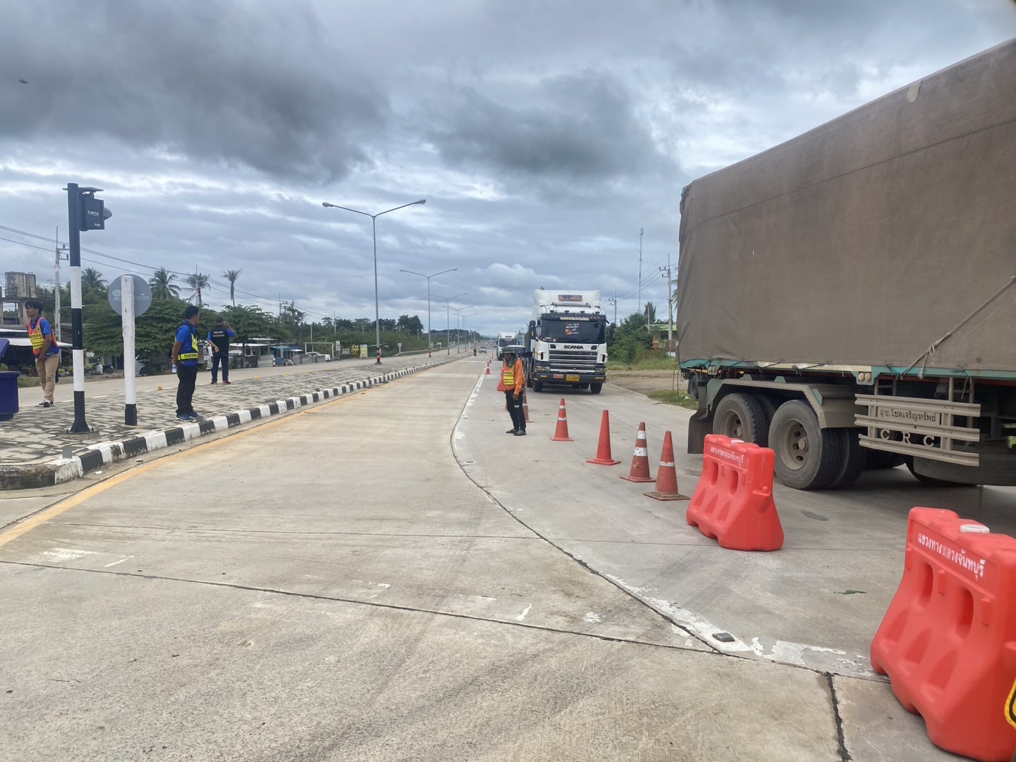 หมวดทางหลวงทับไทร แขวงทางหลวงจันทบุรี ร่วมกับ องค์การบริหารส่วนตำบลเทพนิมิต ชุด ชรบ. ดำเนินการอำนวยความสะดวกการจราจร