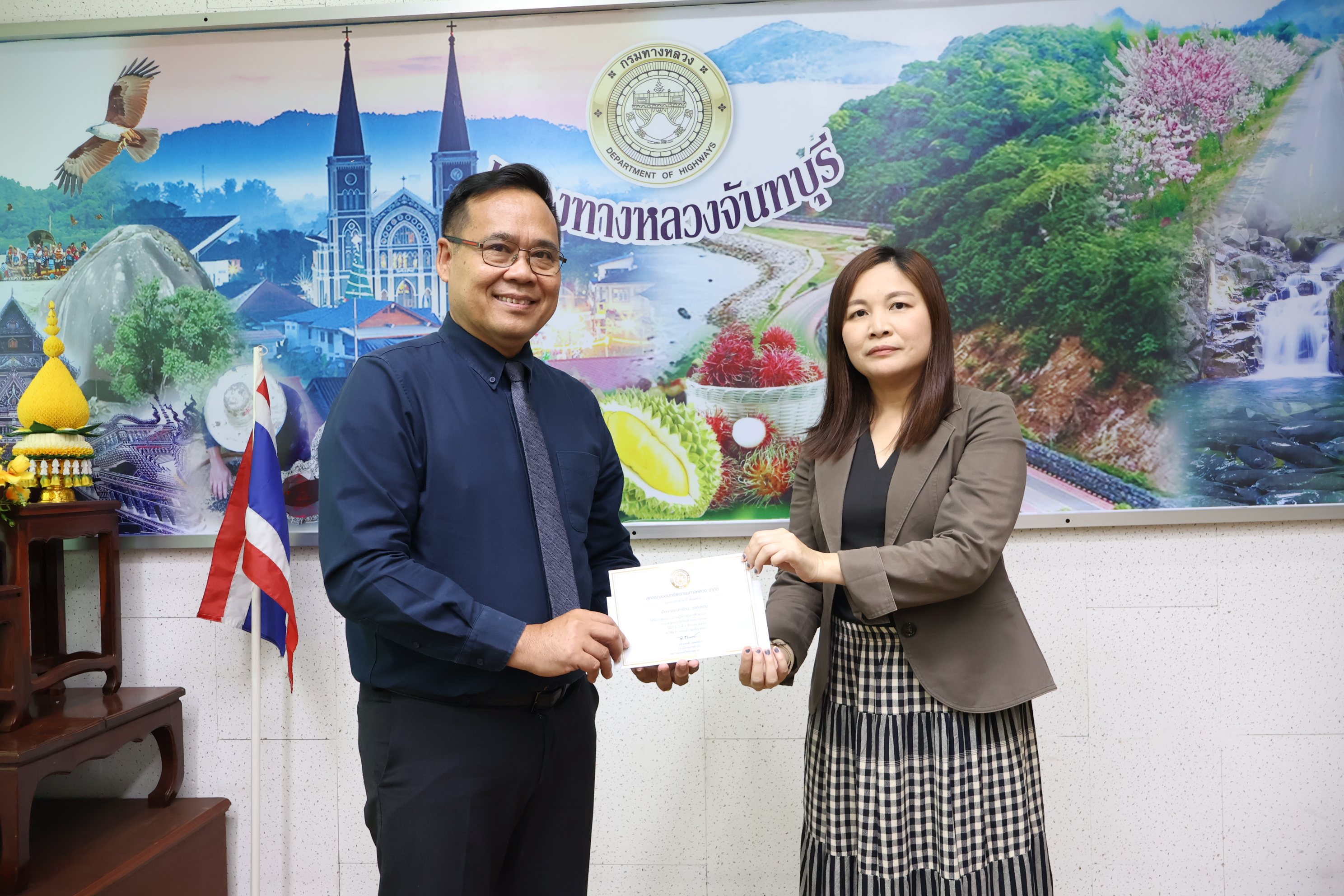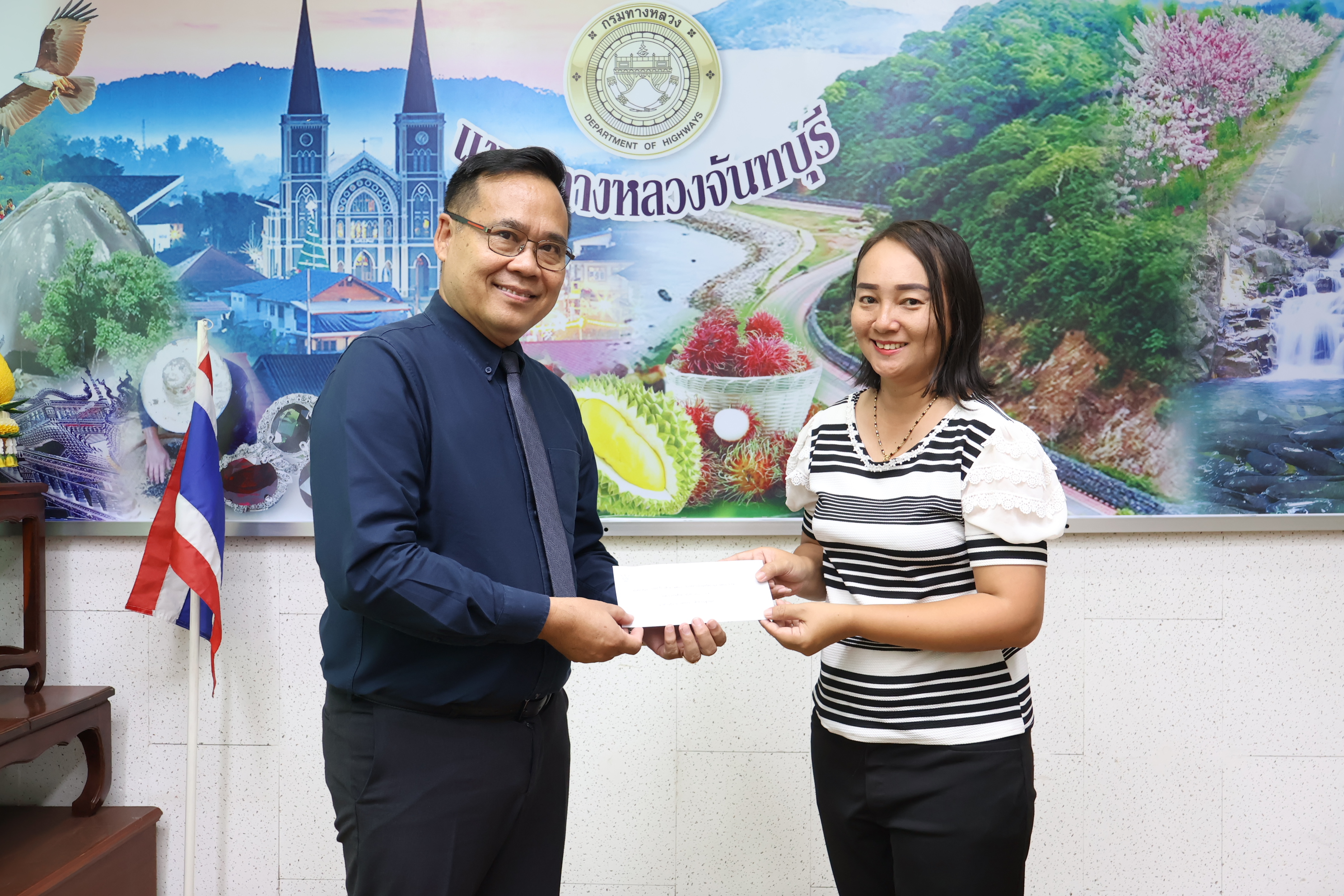นายยุทธนา พิทักษ์ ผู้อำนวยการแขวงทางหลวงจันทบุรี เป็นตัวแทนของสหกรณ์ออมทรัพย์กรมทางหลวง มอบทุนการศึกษา ประเภท ทุนเรียนดี และ สนับสนุนการศึกษา ประจำปี 2568