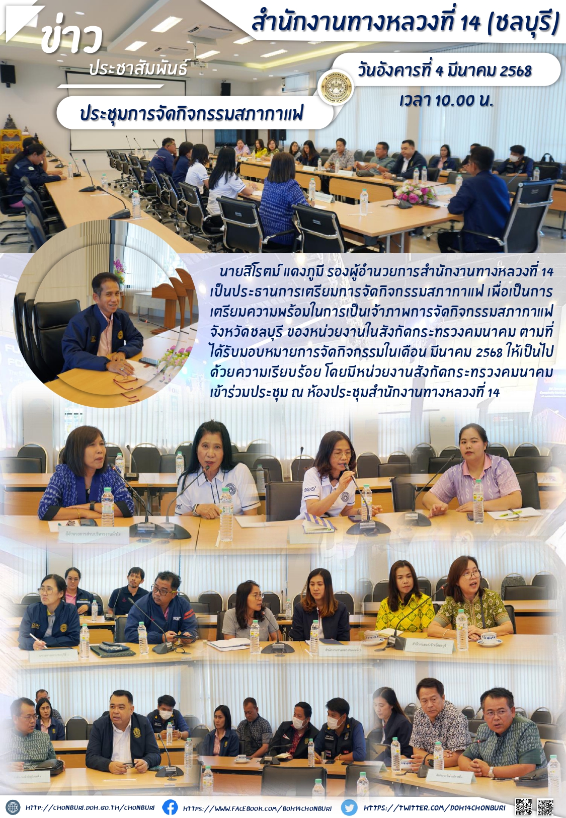 ประชุมเตรียมความพร้อมในการเป็นเจ้าภาพจัดกิจกรรมสภากาแฟ จังหวัดชลบุรี