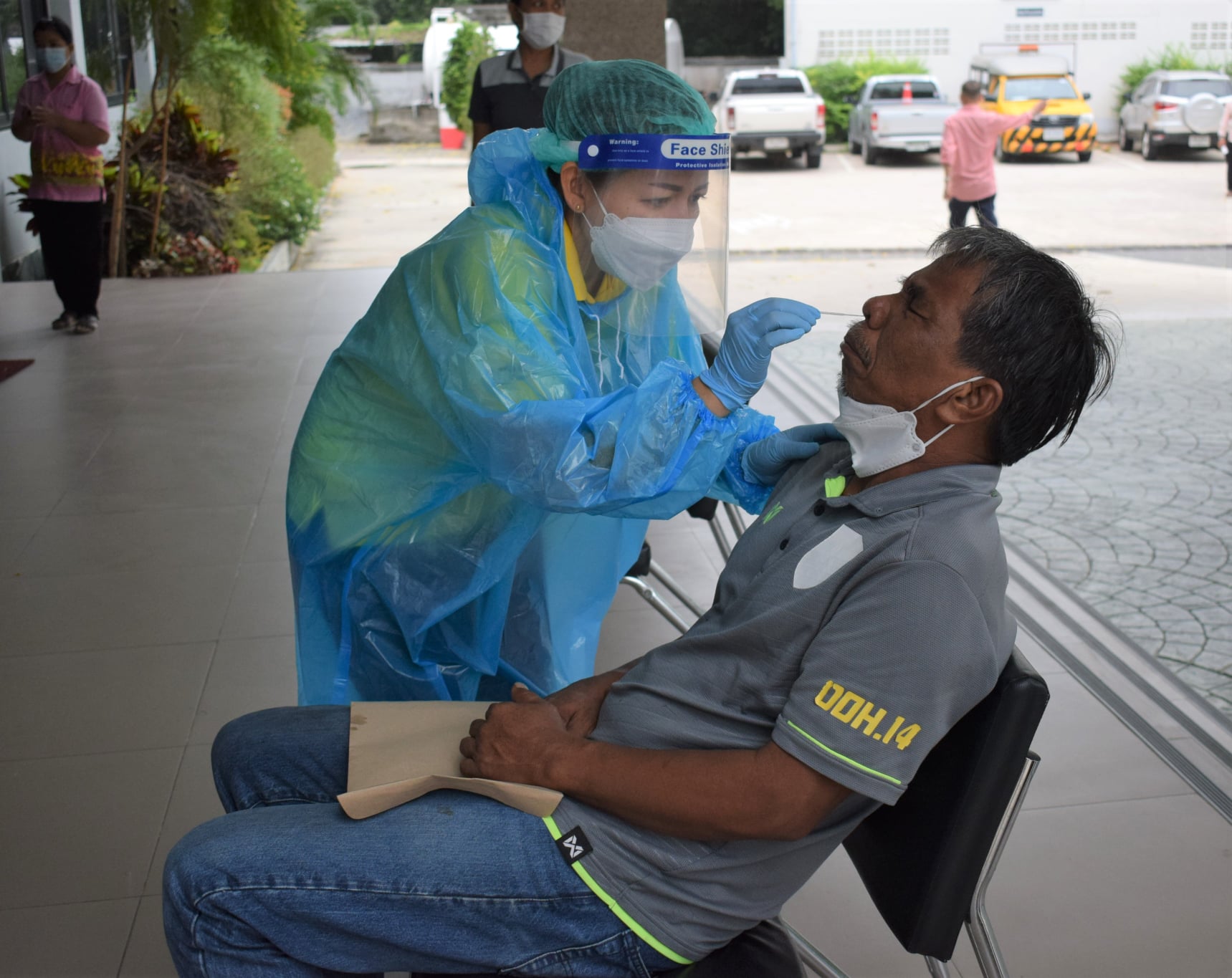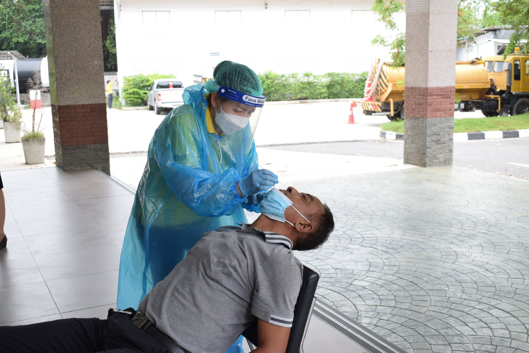 โดยบริการเจลล้างมือ เครื่องตรวจวัดอุณหภูมิ และชุดตรวจ ATK ให้กับเจ้าหน้าที่ก่อนเข้าปฎิบัติงาน
