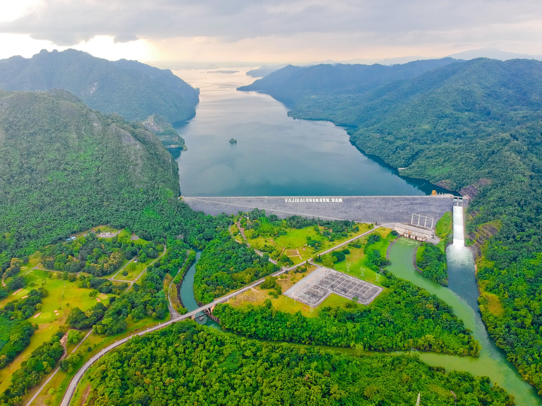3.เขื่อนวชิราลงกรณ์ จ.กาญจนบุรี ตั้งอยู่บนแม่น้ำแควน้อย เพื่อประโยชน์ด้านชลประทานและผลิตไฟฟ้า ตัวอ่างเก็บน้ำอยู่ในส่วนท้องที่อำเภอทองผาภูมิ, อำเภอสังขละบุรี จังหวัดกาญจนบุรี เขื่อนวชิราลงกรณ์จึงจัดเป็นเขื่อนอเนกประสงค์และยังเป็นเขื่อนหินถมแห่งแรกของประเทศไทย การเดินทางจากกรุงเทพฯ ใช้ทางหลวงหมายเลข 4 มุ่งหน้าจังหวัดราชบุรี ระยะทางประมาณ 65 กิโลเมตร และใช้ทางหลวงหมายเลข 323 ต่อเนื่องทางหลวงหมายเลข 3272 มุ่งหน้าอำเภอทองผาภูมิ จังหวัดกาญจนบุรี ระยะทางประมาณ 300 กิโลเมตร ทางเข้าเขื่อนวชิราลงกรณ์จะอยู่ทางขวามือ