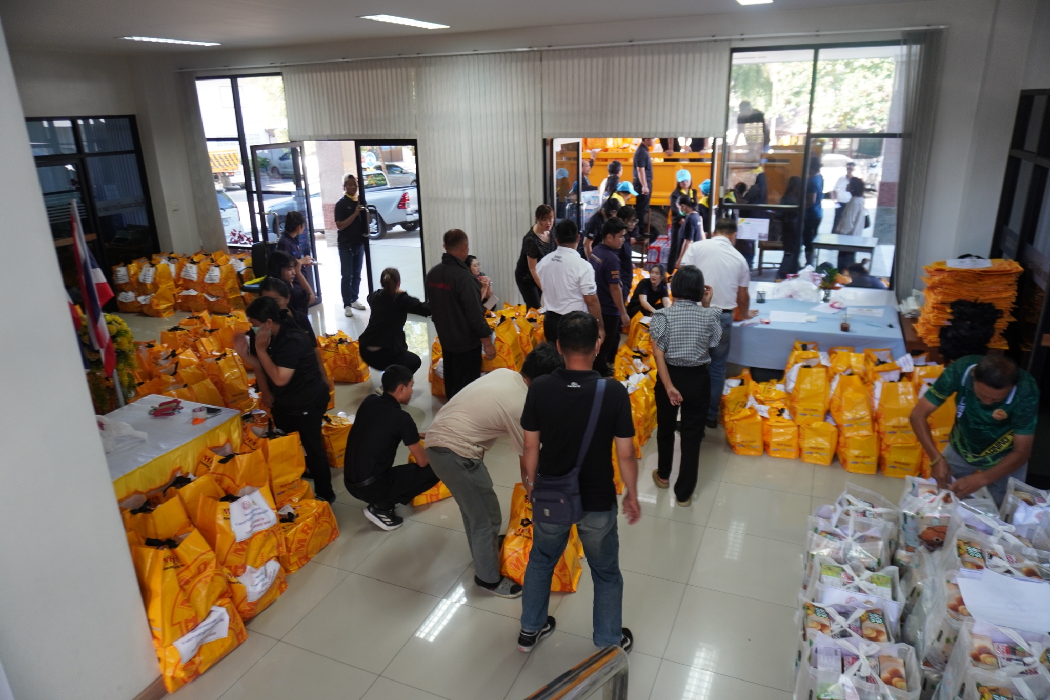 ได้ร่วมกับผู้บริหาร ข้าราชการ พนักงานและ ลูกจ้าง จัดทำถุงยังชีพ จำนวน 1,000 ชุด