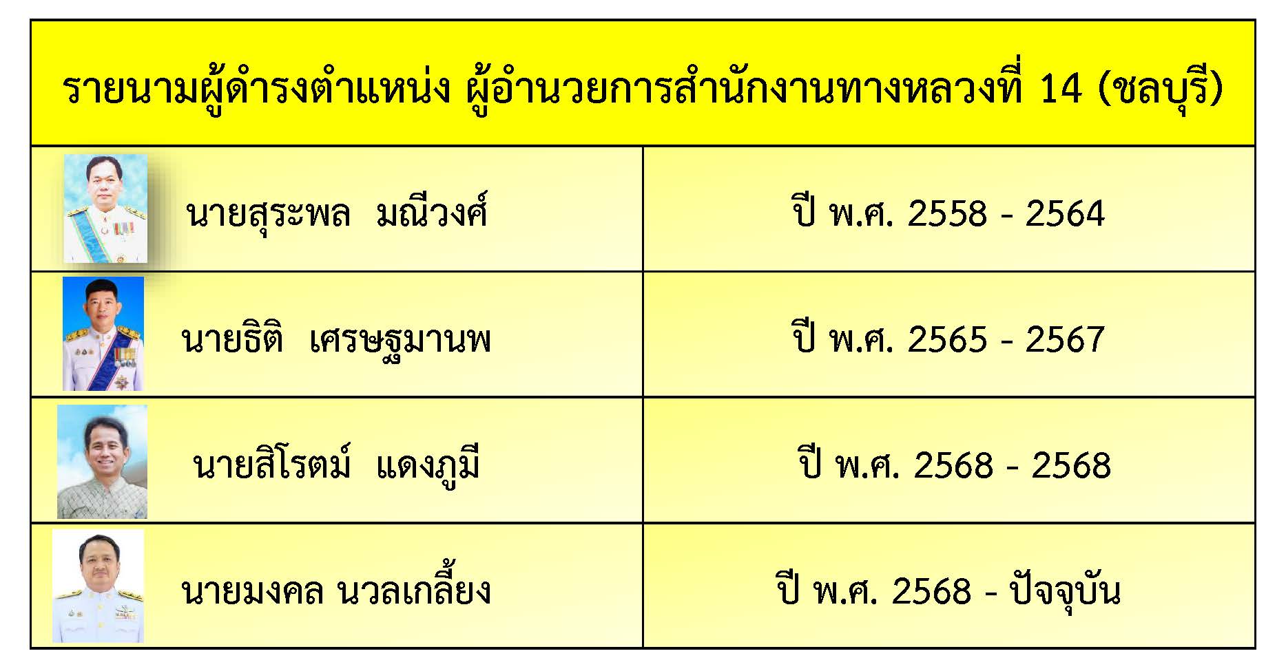 รายนามผู้ดำรงตำแหน่ง ผู้อำนวยการสำนักงานทางหลวงที่ 14