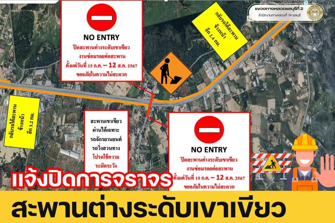 ประชาสัมพันธ์ แจ้งปิดการจราจรเพื่อทำงานก่อสร้างสะพานลอยคนเดินข้ามหรือทางลอด บริเวณทางหลวงหมายเลข 3 ตอนพัทยา - พลูตาหลวง ที่ กม.171+450