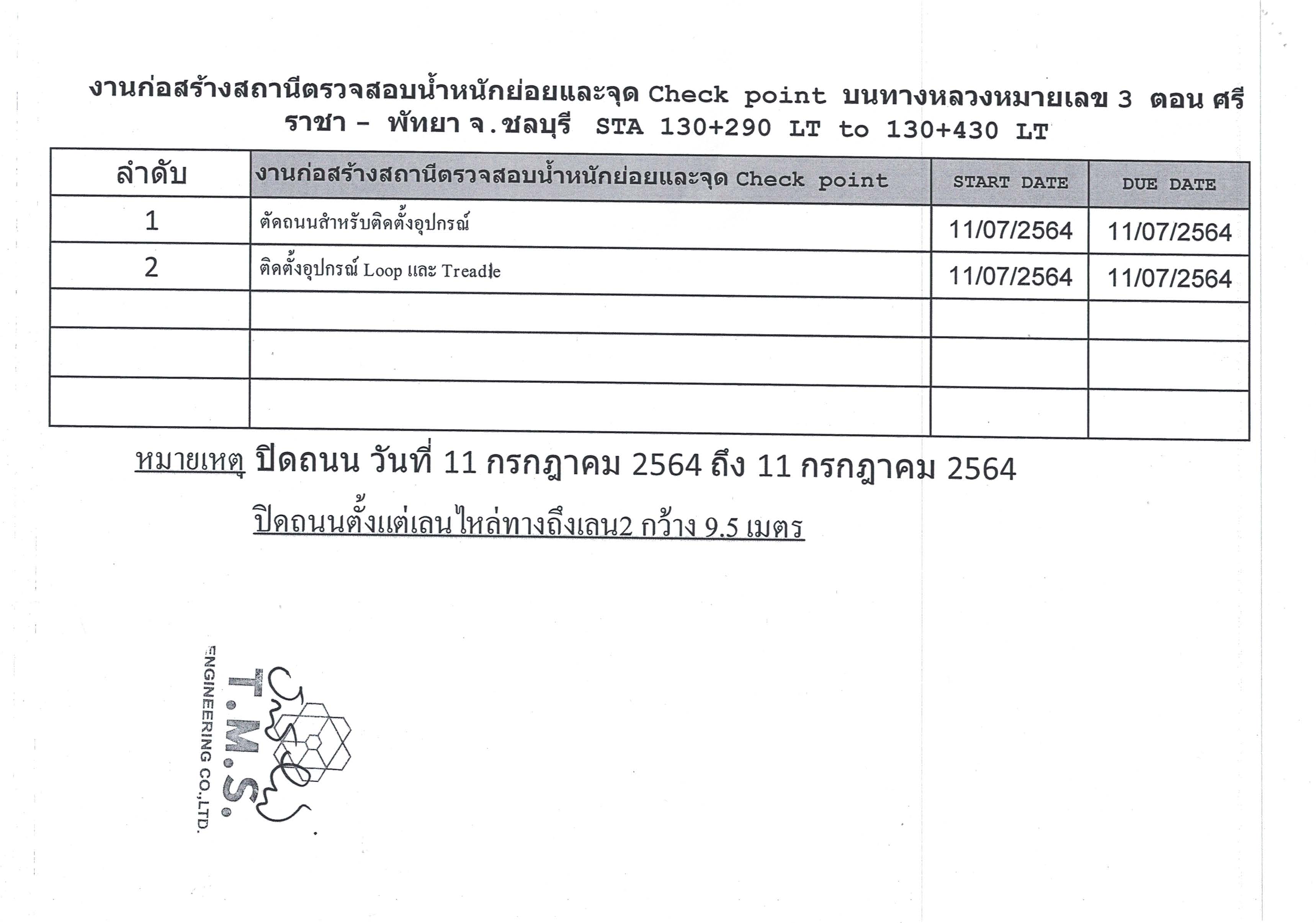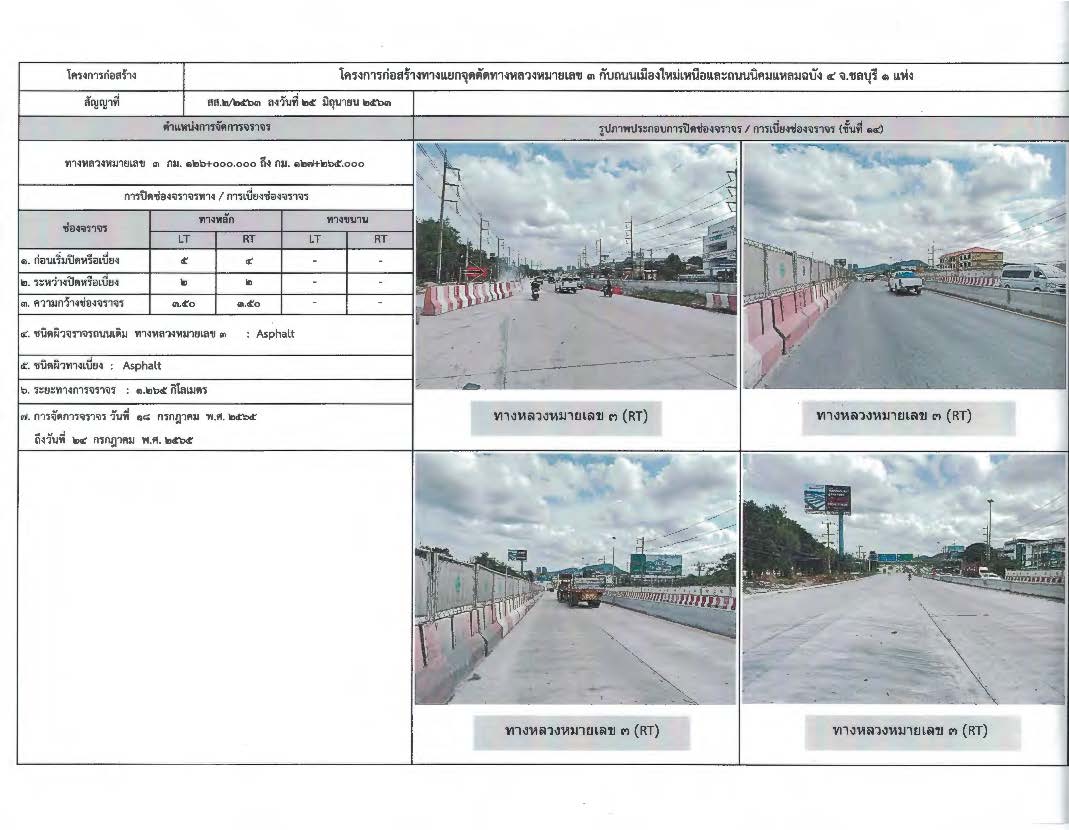 ขออนุญาตปิดการจราจรชั่วคราว งานจ้างเหมาก่อสร้างสถานีตรวจสอบน้ำหนักย่อยและจุด Check Point บนทางหลวงหมายเลข 3 ตอน ศรีราชา - พัทยา จ.ชลบุรี