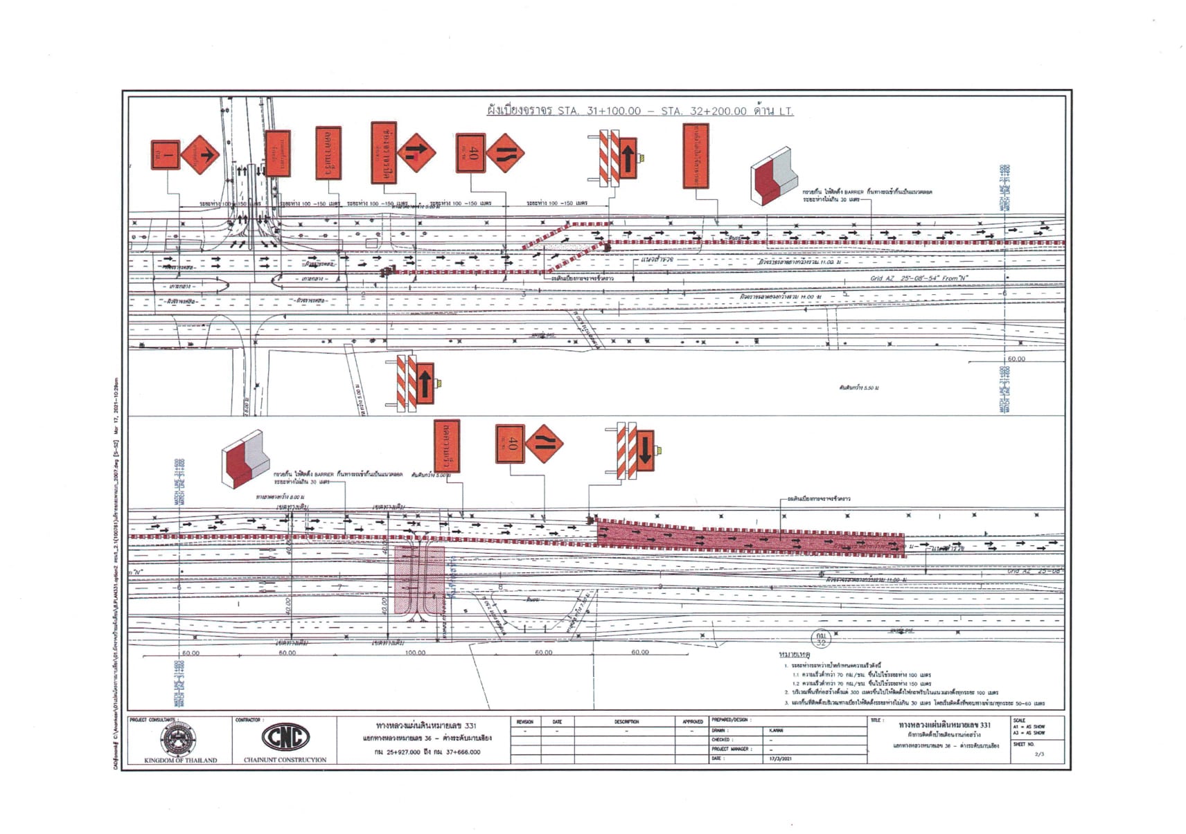 แผนผังการจัดการจราจรงานก่อสร้างปรับปรุงทางแยกต่างระดับเขาไม้แก้ว จ.ชลบุรี จุดตัดทางหลวงหมายเลข 36 กม.15+221.000 กับทางหลวงหมายเลข 331 กม.25+800.000 ระหว่างวันที่ 21 กุมภาพันธ์ - 27 กุมภาพันธ์ 2565