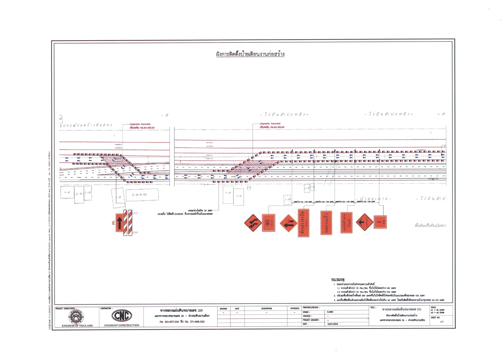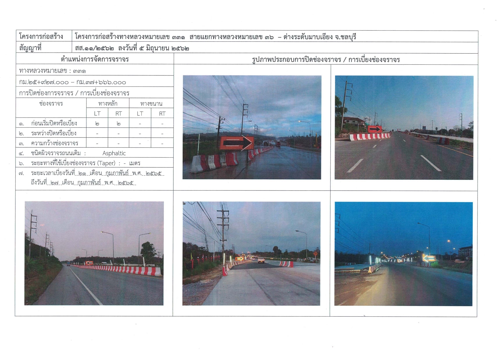 แผนผังและรูปถ่ายการจัดการจราจรบริเวณพื้นที่ก่อสร้างทางหลวงหมายเลข 36 - ต่างระดับมาบเอียง จ.ชลบุรี ระหว่างวันที่ 21 กุมภาพันธ์ - 27 กุมภาพันธ์ 2565