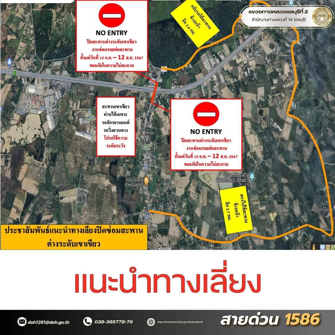 โดยโครงการก่อสร้าง จะทำการปิดสะพานต่างระดับเขาเขียว เพื่อซ่อมรอยต่อสะพาน ตั้งเเต่งวันที่ 15 กรกฎาคม 2567 - 12 สิงหาคม 2567