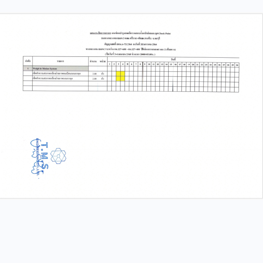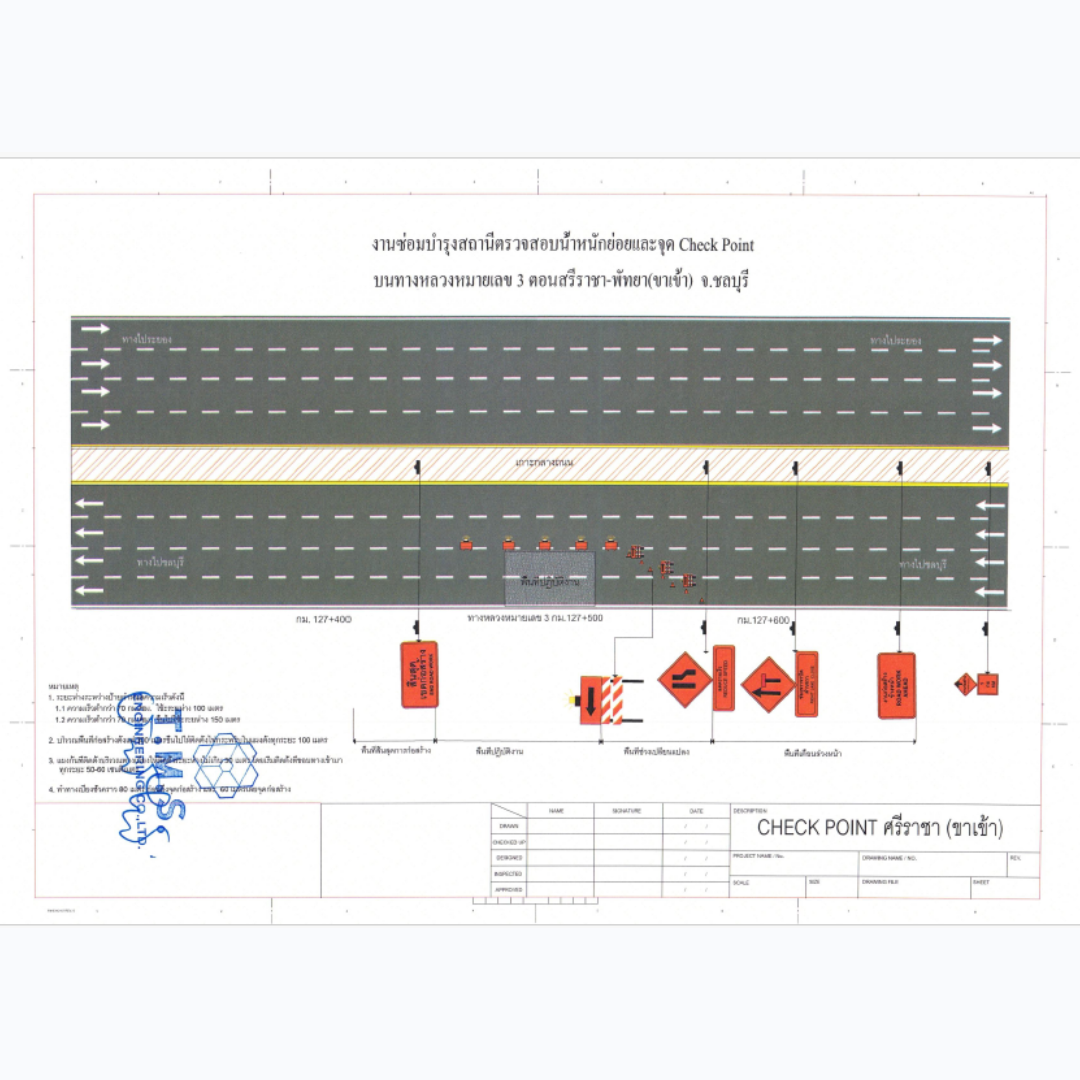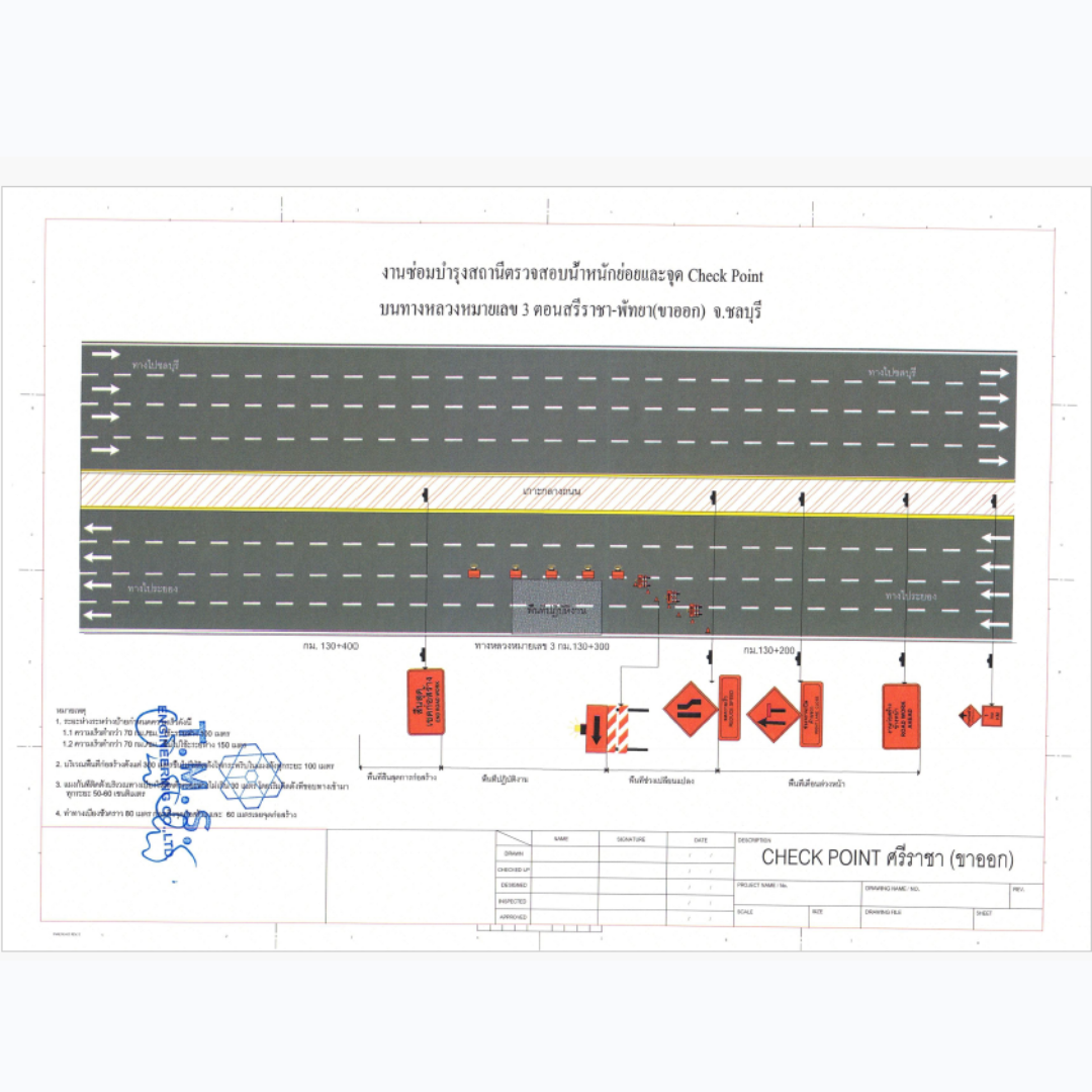 บริเวณ สถานีตรวจสอบน้ำหนักจุดย่อย Check Point บนทางหลวงหมายเลข 3 ตอน ศรีราชา - พัทยา จังหวัดชลบุรี เพื่อดำเนินการทำความสะอาดกล้องถ่ายภาพทะเบียนรถบรรทุก จึงขออนุญาตปิดการจราจรช่องเลนซ้ายทาง
