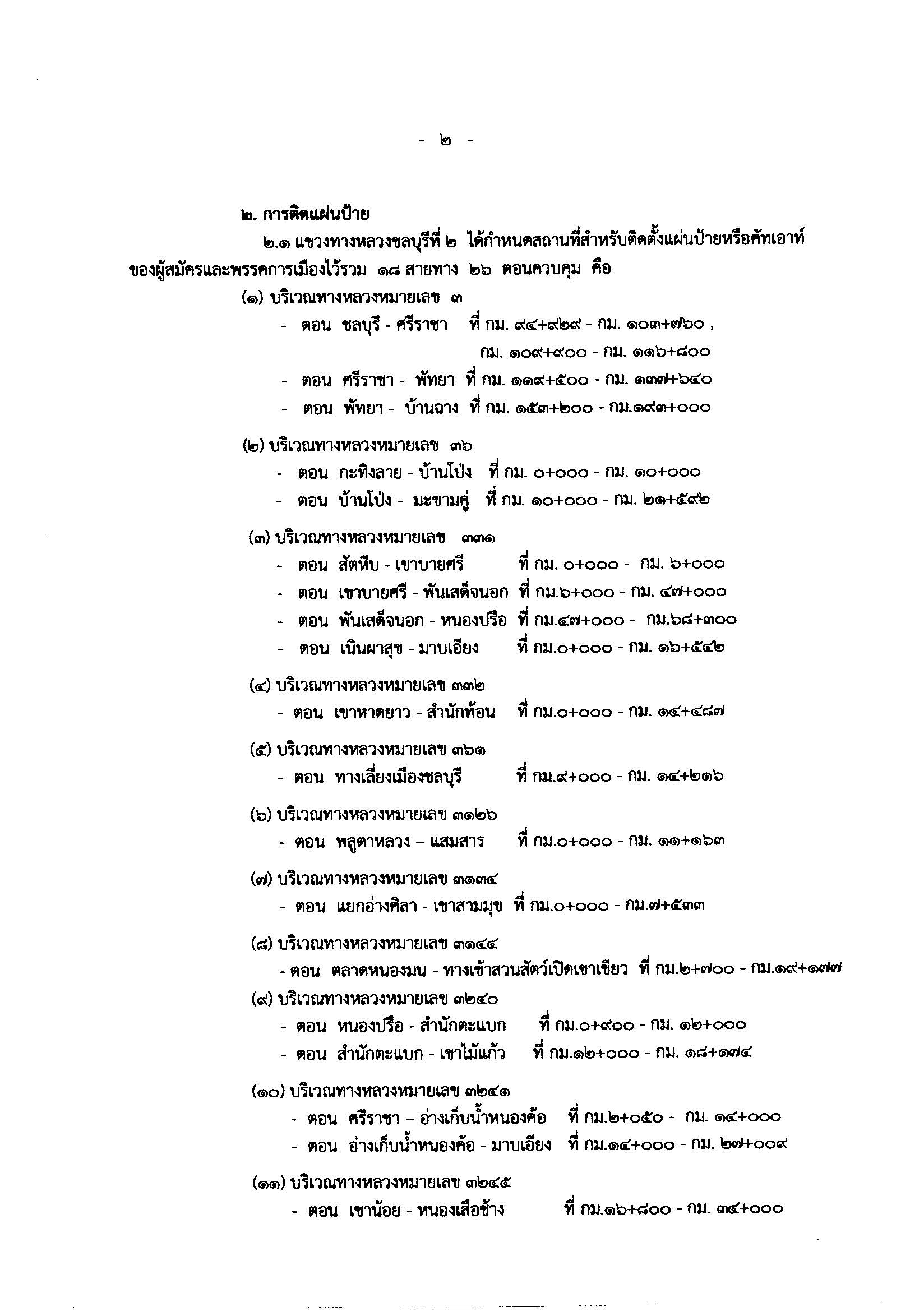 ประกาศแขวงทางหลวงชลบุรีที่ 2 เรื่อง กำหนดสถานที่ หลักเกณฑ์และวิธีการปิดประกาศและแผ่นป้ายเกี่ยวกับการเลือกตั้งสมาชิกผู้แทนราษฎร