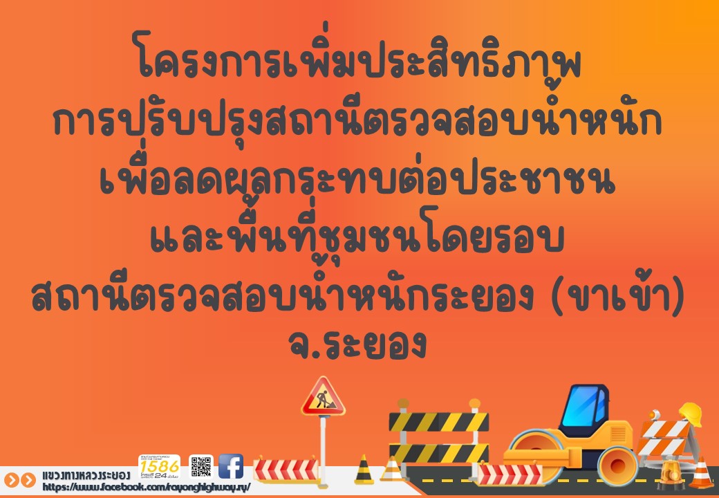 โครงการเพิ่มประสิทธิภาพการปรับปรุงสถานีตรวจสอบน้ำหนัก เพื่อลดผลกระทบต่อประชาชนและพื้นที่ชุมชนโดยรอบ สถานีตรวจสอบน้ำหนักระยอง(ขาเข้า)จ.ระยอง