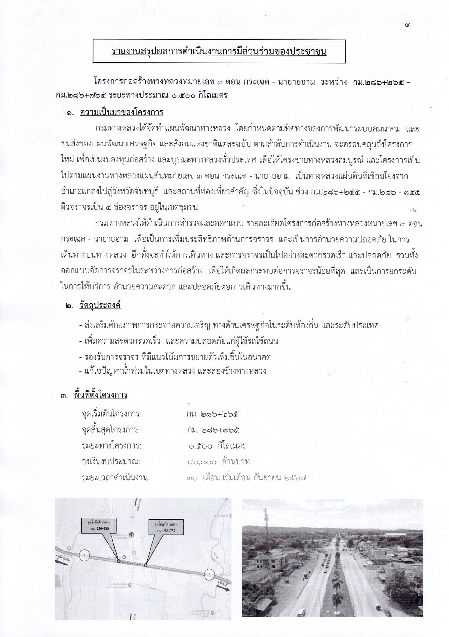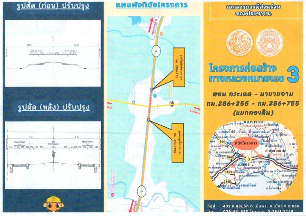 รายงานสรุปผลการดำเนินงานการมีส่วนร่วมของประชาชน โครงการก่อสร้างทางหลวงหมายเลข 3 ตอน กระเฉด-นายายอาม ระหว่าง กม.286+265-กม.286+765 ระยะทางประมาณ 0.500 กิโลเมตร