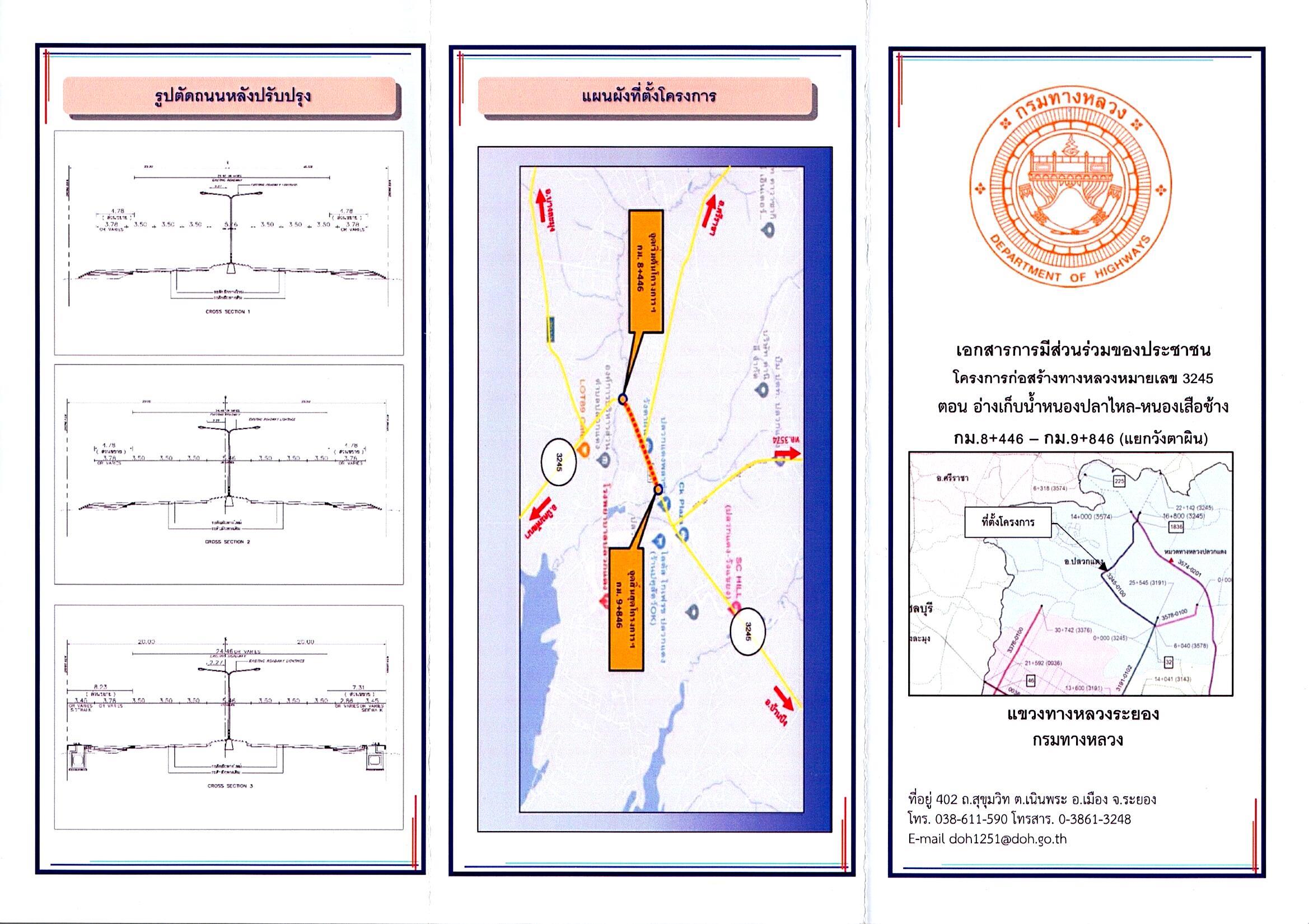 ข้อมูลข่าว : รายงานสรุปผลการดำเนินงานการมีส่วนร่วมของประชาชน โครงการก่อสร้างทางหลวงหมายเลข 3245 ตอน อ่างเก็บน้ำหนองปลาไหล - หนองเสือช้าง ช่วง กม.8+446 - กม.9+846