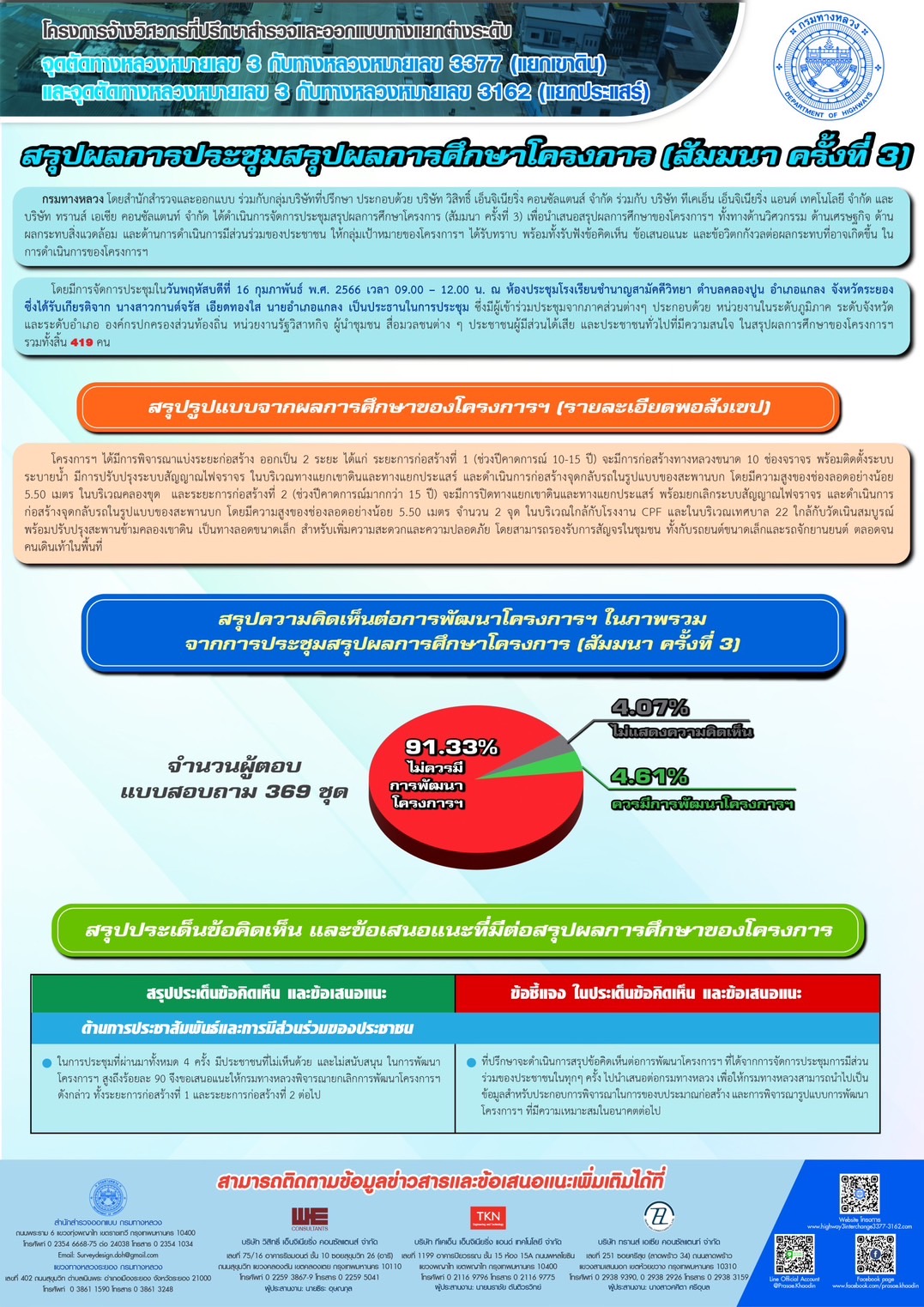 ประกาศกรมทางหลวง เรื่อง สรุปผลการประชุมสรุปผลการศึกษาโครงการ (สัมมนา ครั้งที่ 3) โครงการจ้างวิศวกรที่ปรึกษาสำรวจและออกแบบทางแยกต่างระดับ จุดตัดทางหลวงหมายเลข 3 กับทางหลวงหมายเลข 3377 (แยกเขาดิน) และจุดตัดทางหลวงหมายเลข 3 กับทางหลวงหมายเลข 3162 (แยกประแสร์)