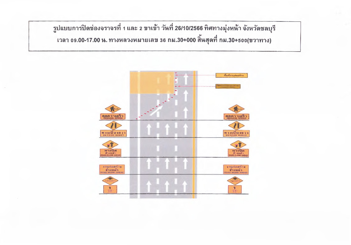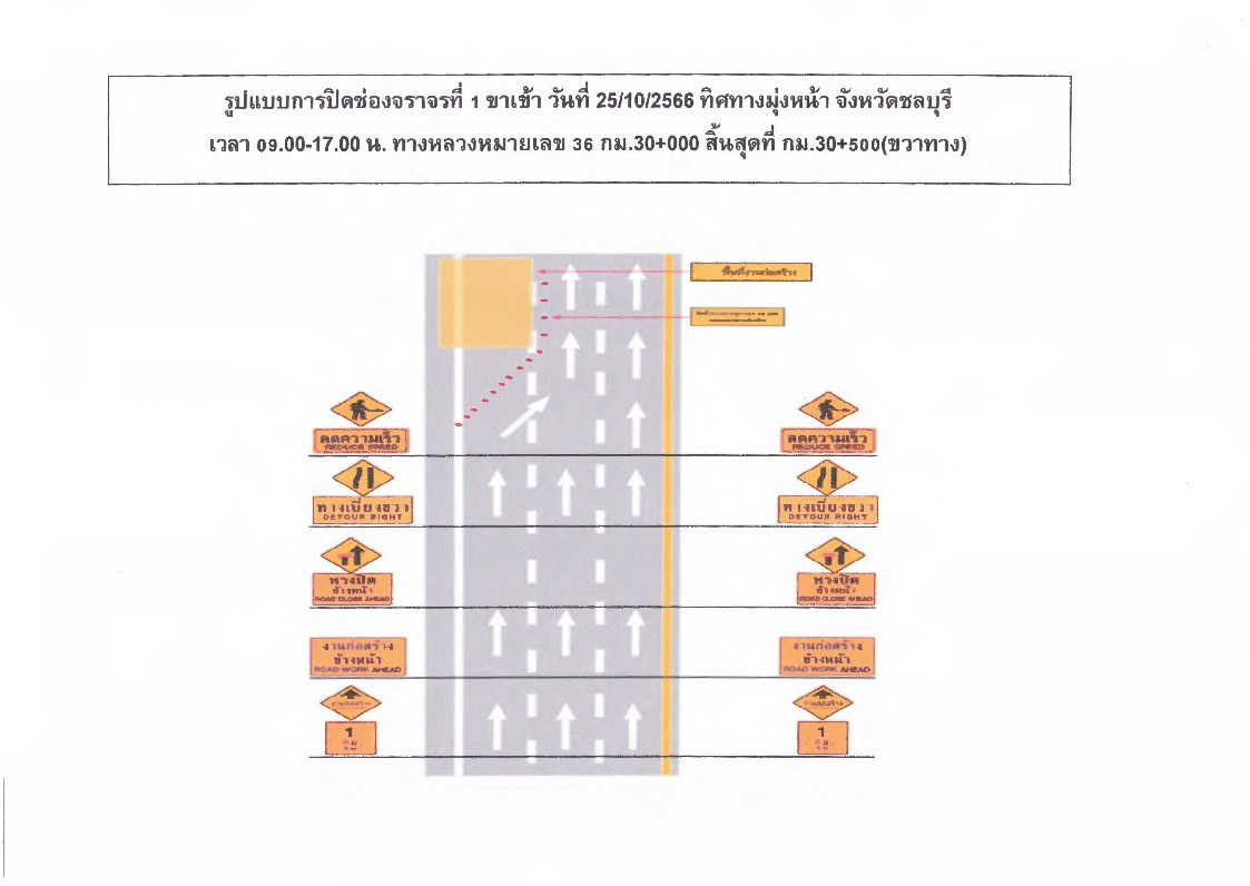 - ปิดช่องจราจรที่ 1 ในวันที่ 25 ตุลาคม 2566 ตั้งแต่เวลา 09.00 - 17.00 น.