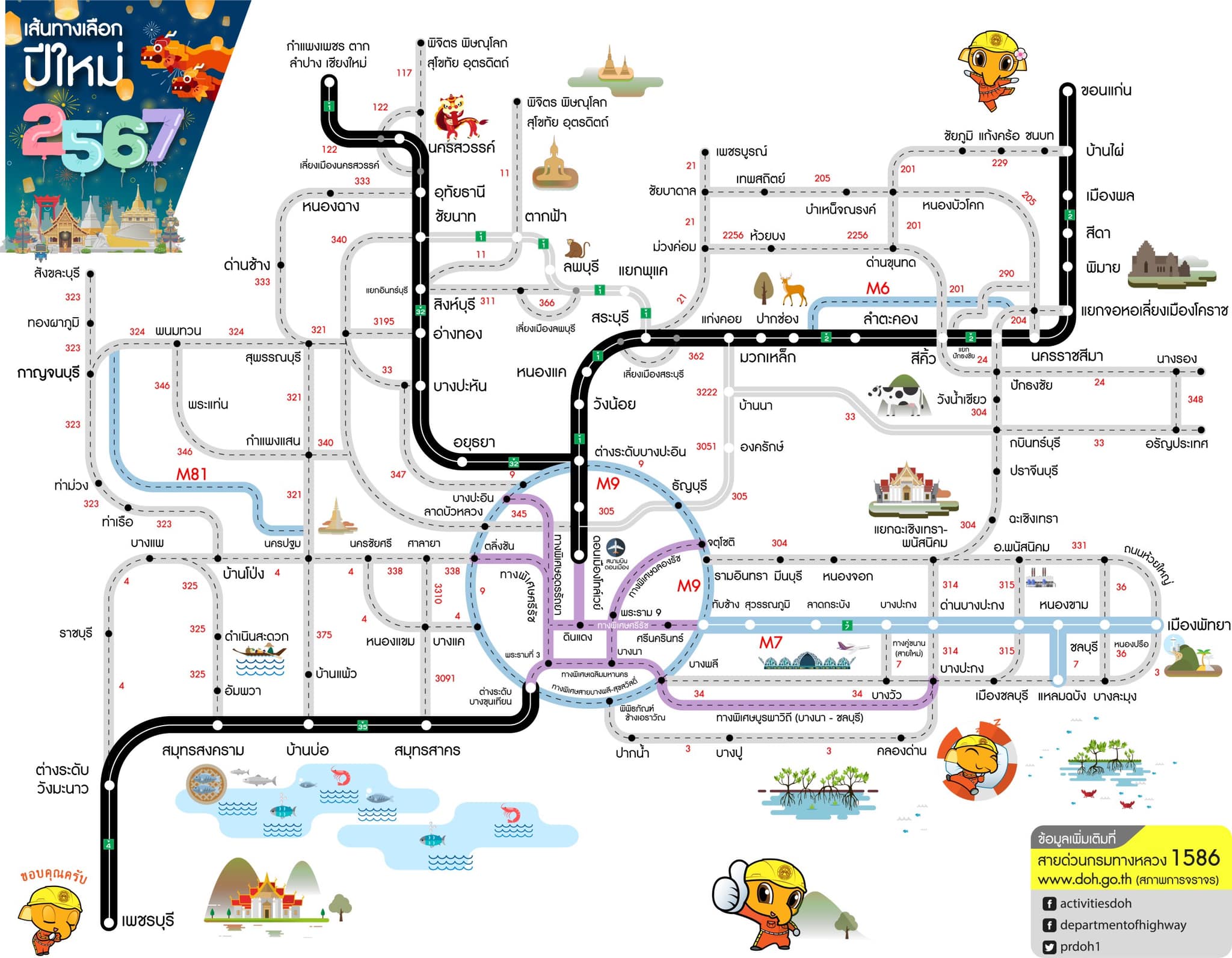 กรมทางหลวง แนะนำเส้นทางเลือกจากกรุงเทพฯสู่ภูมิภาคต่างๆ ช่วงเทศกาลปีใหม่ 2567 เพื่อให้ผู้ใช้ทางได้รับความสะดวกรวดเร็วในการเดินทาง