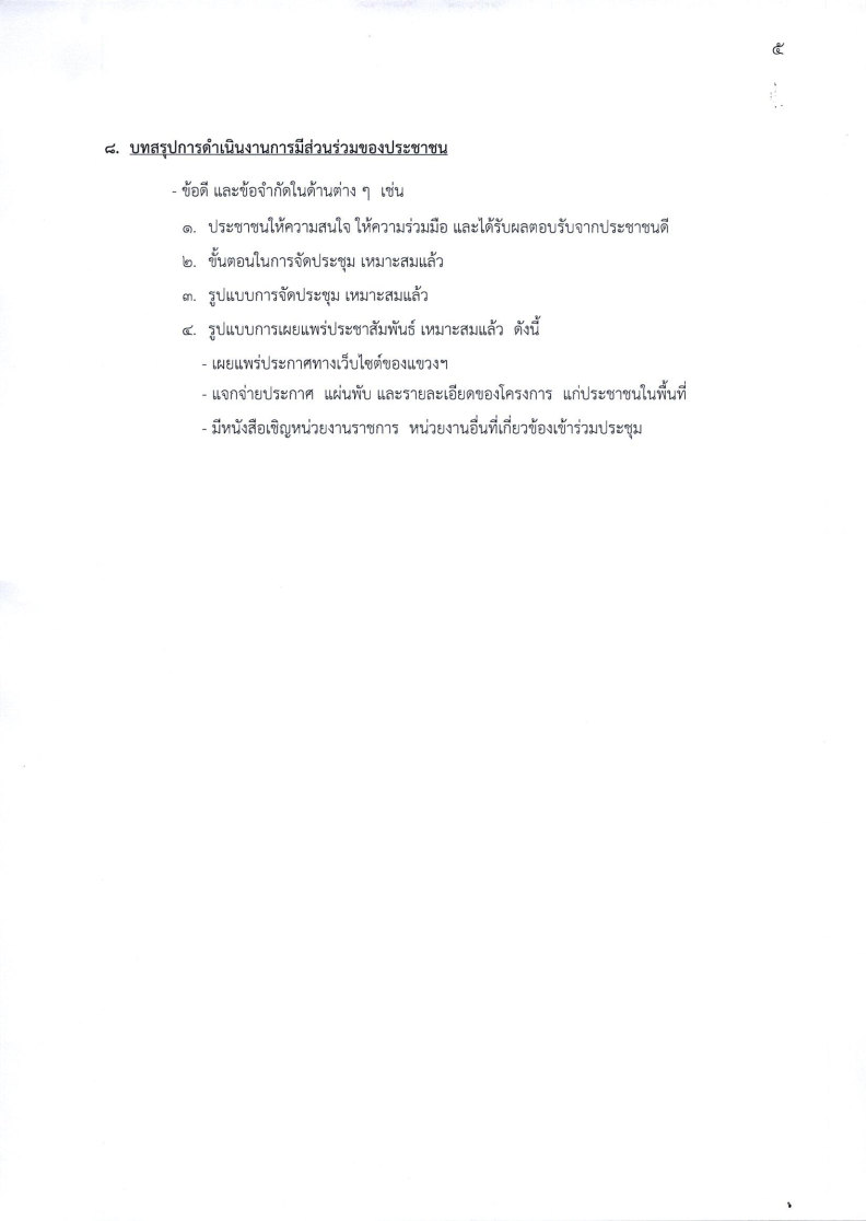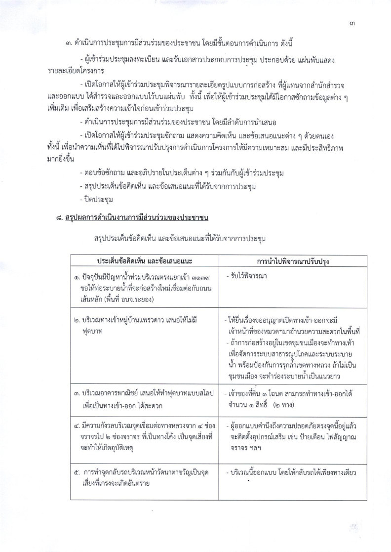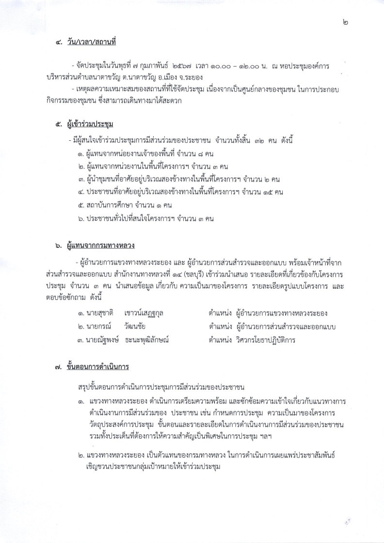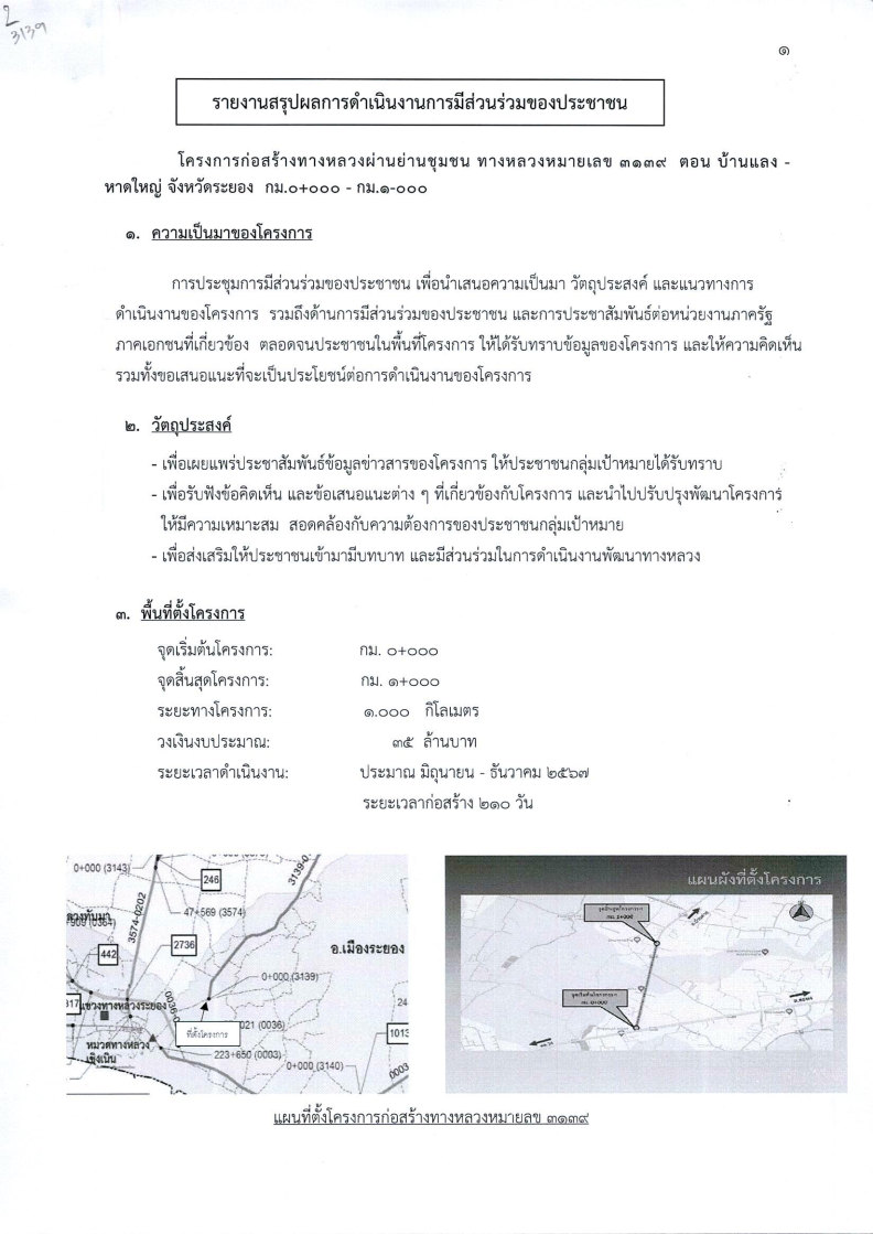 รายงานสรุปผลการดำเนินงานการมีส่วนร่วมของประชาชน โครงการพัฒนาทางหลวงผ่านย่านชุมชน ทางหลวงหมายเลข 3139 ตอน บ้านแลง - หาดใหญ่ จังหวัดระยอง กม.0+000 - กม.1+000
