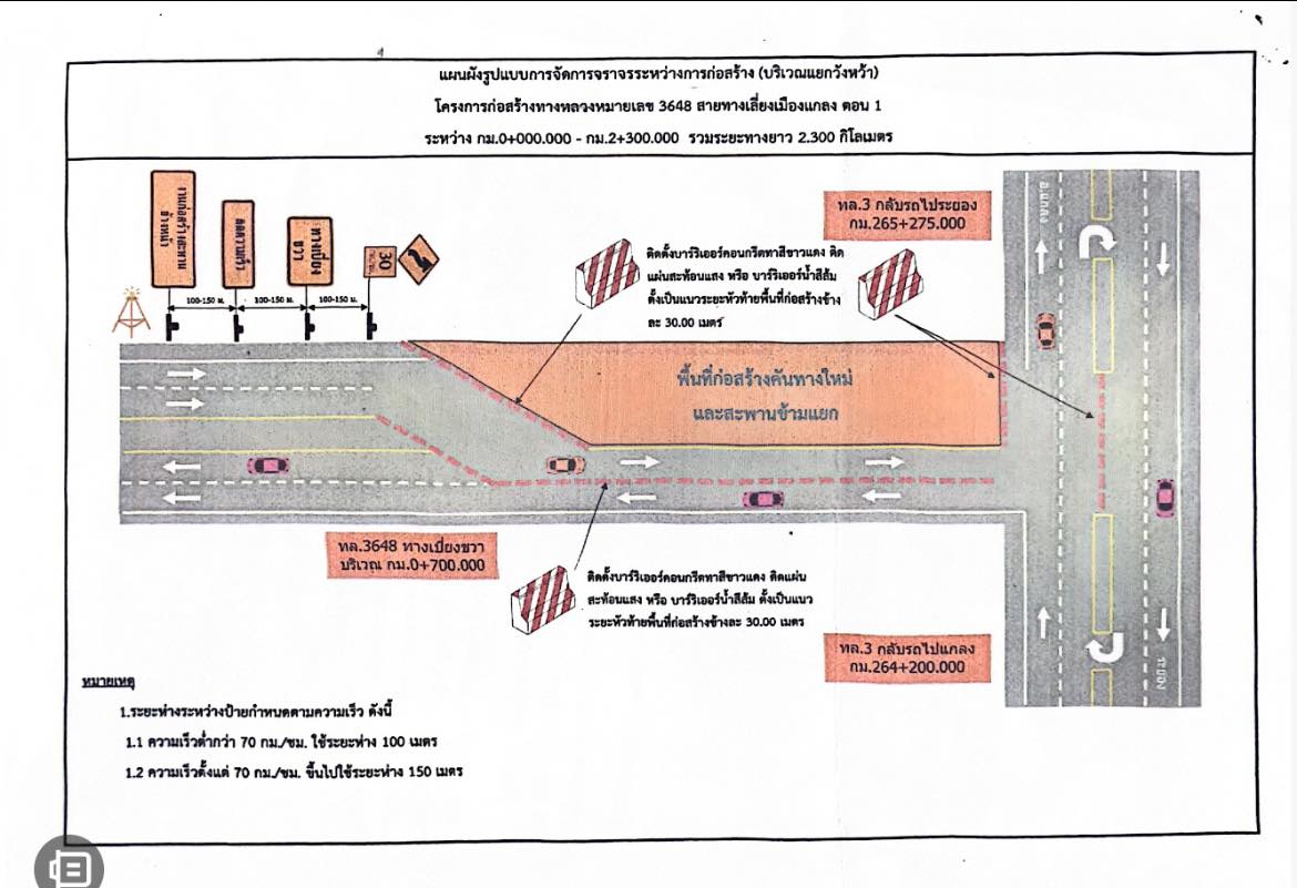 ข้อมูลข่าว : โครงการก่อสร้างทางหลวงหมายเลข 3648 สายทางเลี่ยงเมืองแกลง ตอน 1 ระหว่าง กม.0+000.000-กม.2+300.000 ระยะทางยาวประมาณ 2.300 กิโลเมตร รวมงานติดตั้งไฟฟ้าแสงสว่างและไฟกระพริบบนทางหลวง เริ่มต้นสัญญาวันที่ 28 กันยายน 2567 สิ้นสุดสัญญา วันที่ 12 กันยายน 2570