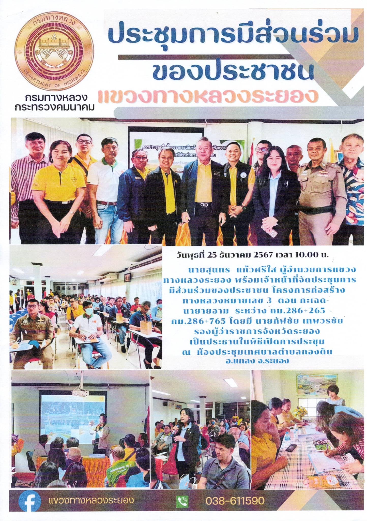 รายงานสรุปผลการดำเนินงานการมีส่วนร่วมของประชาชน โครงการก่อสร้างทางหลวงหมายเลข 3 ตอน กระเฉด-นายายอาม ระหว่าง กม.286+265-กม.286+765 ระยะทางประมาณ 0.500 กิโลเมตร