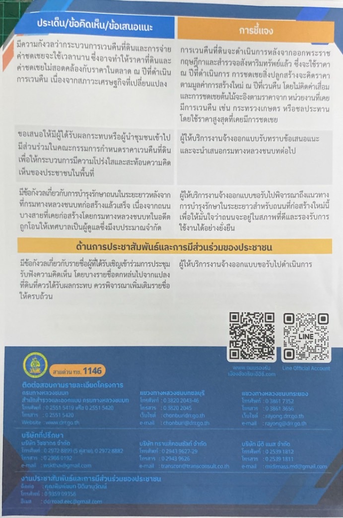สรุปผลการประชุมรับฟังความคิดเห็นและการมีส่วนร่วมของประชาชนครั้งที่ 2 โครงการสำรวจออกแบบถนนเพื่อการรองรับโครงการศูนย์ธุรกิจ EEC และเมืองใหม่น่าอยู่อัจฉริยะ