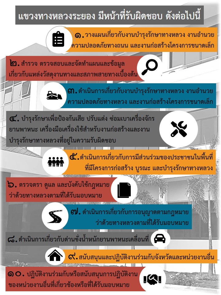3. ดำเนินการเกี่ยวกับงานบำรุงรักษาทางหลวง งานอำนวยความปลอดภัยทางหลวง และงานก่อสร้างโครงการขนาดเล็ก