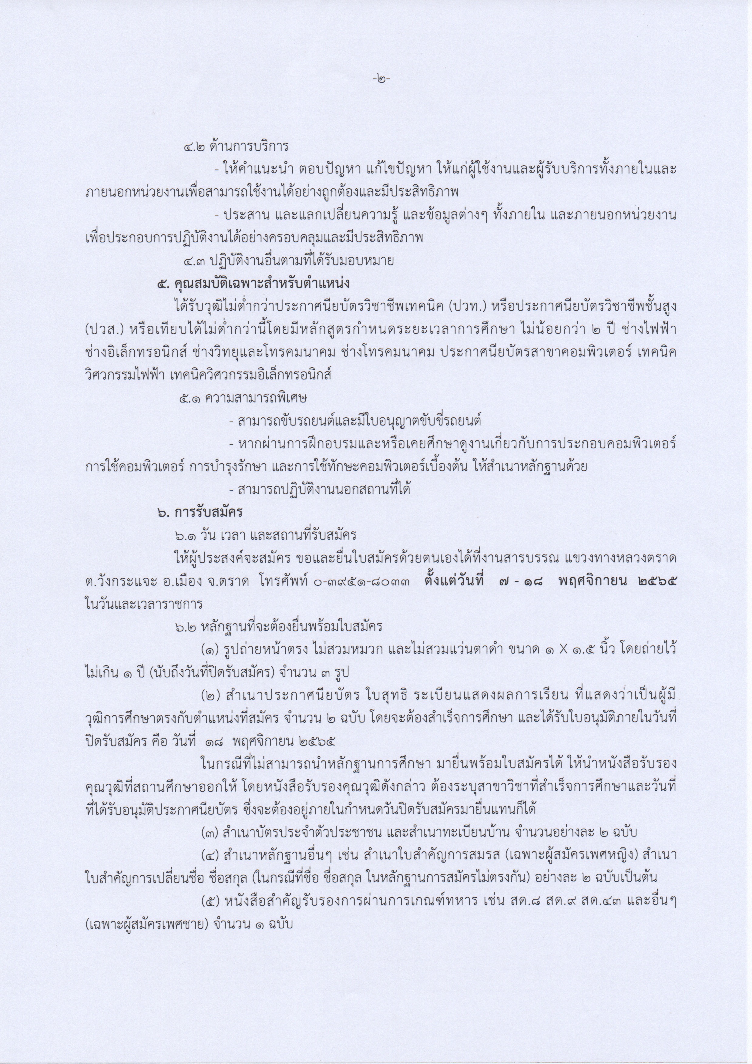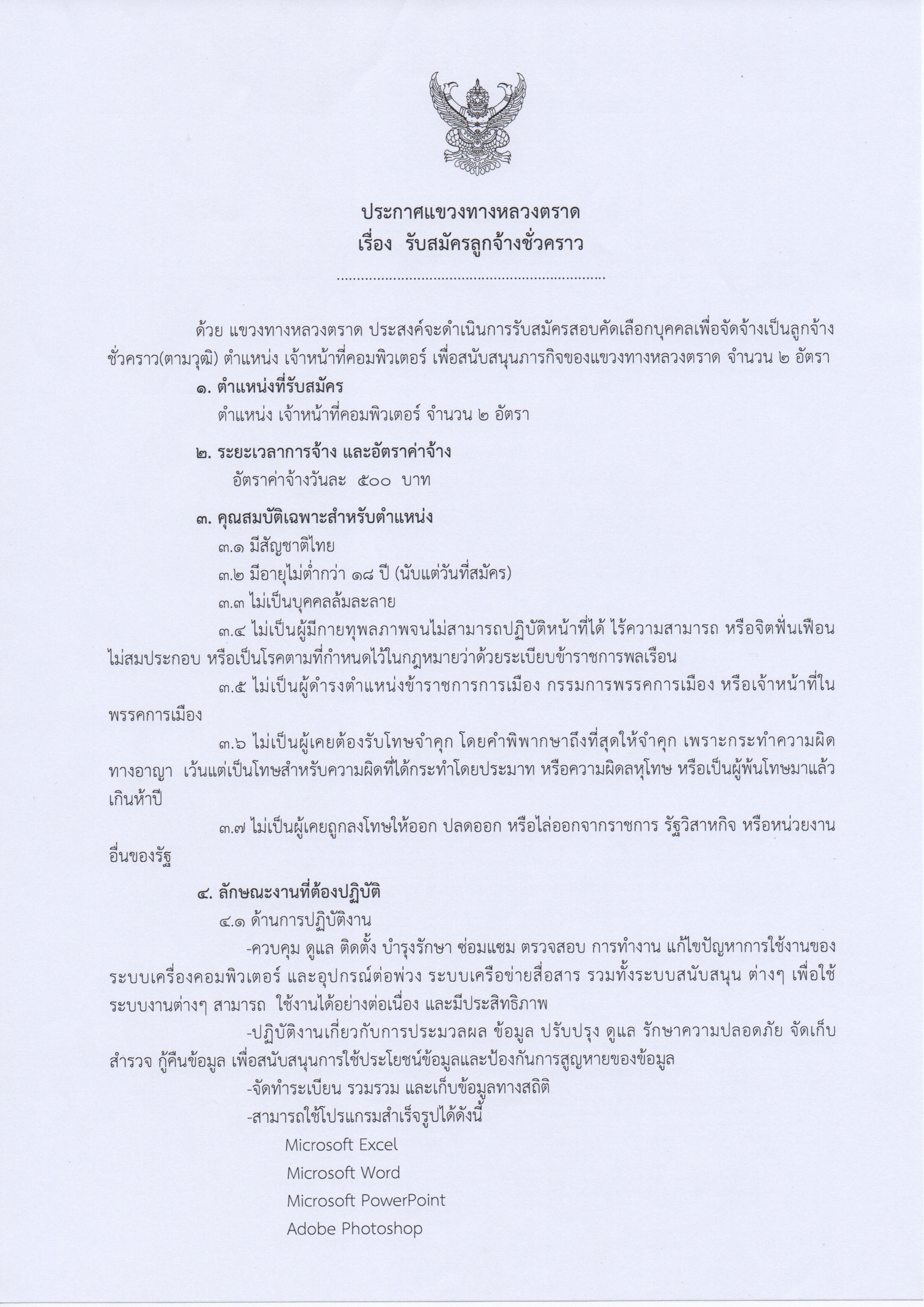 ตำแหน่ง เจ้าหน้าที่คอมพิวเตอร์ เพื่อสนับสนุนภารกิจของแขวงทางหลวงตราด จำนวน 2 อัตรา