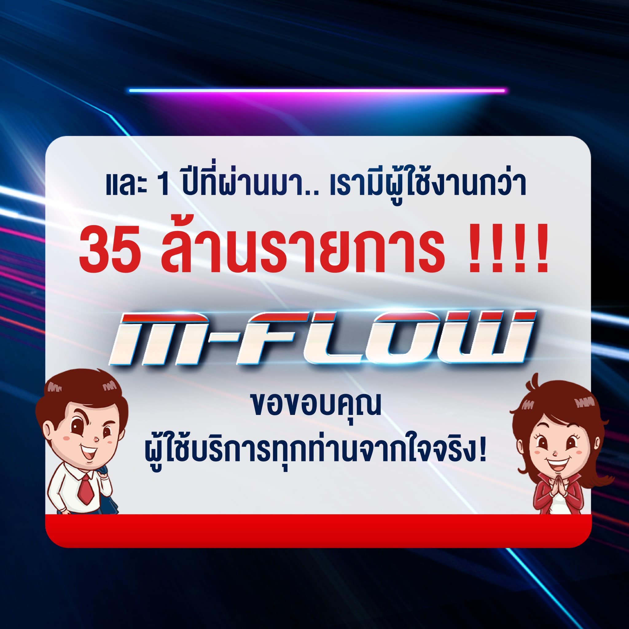 M-FLOW Happy Anniversary 1 year. 15 กุมภาพันธ์ 66 นี้ ครบรอบ 1 ปีที่ชีวิตดีแบบไม่มีอะไรมากั้น เลิกใช้ชีวิตแบบพกเงินสด เข้าผิดช่อง หรือต้องคอยชะลอรถอยู่ตลอด M-FLOW ขอขอบคุณกว่า 35,000,000 รายการที่อยู่เคียงข้างบนถนนสายนี้เสมอมาและเราจะไม่หยุดพัฒนาแค่นี้แน่นอน