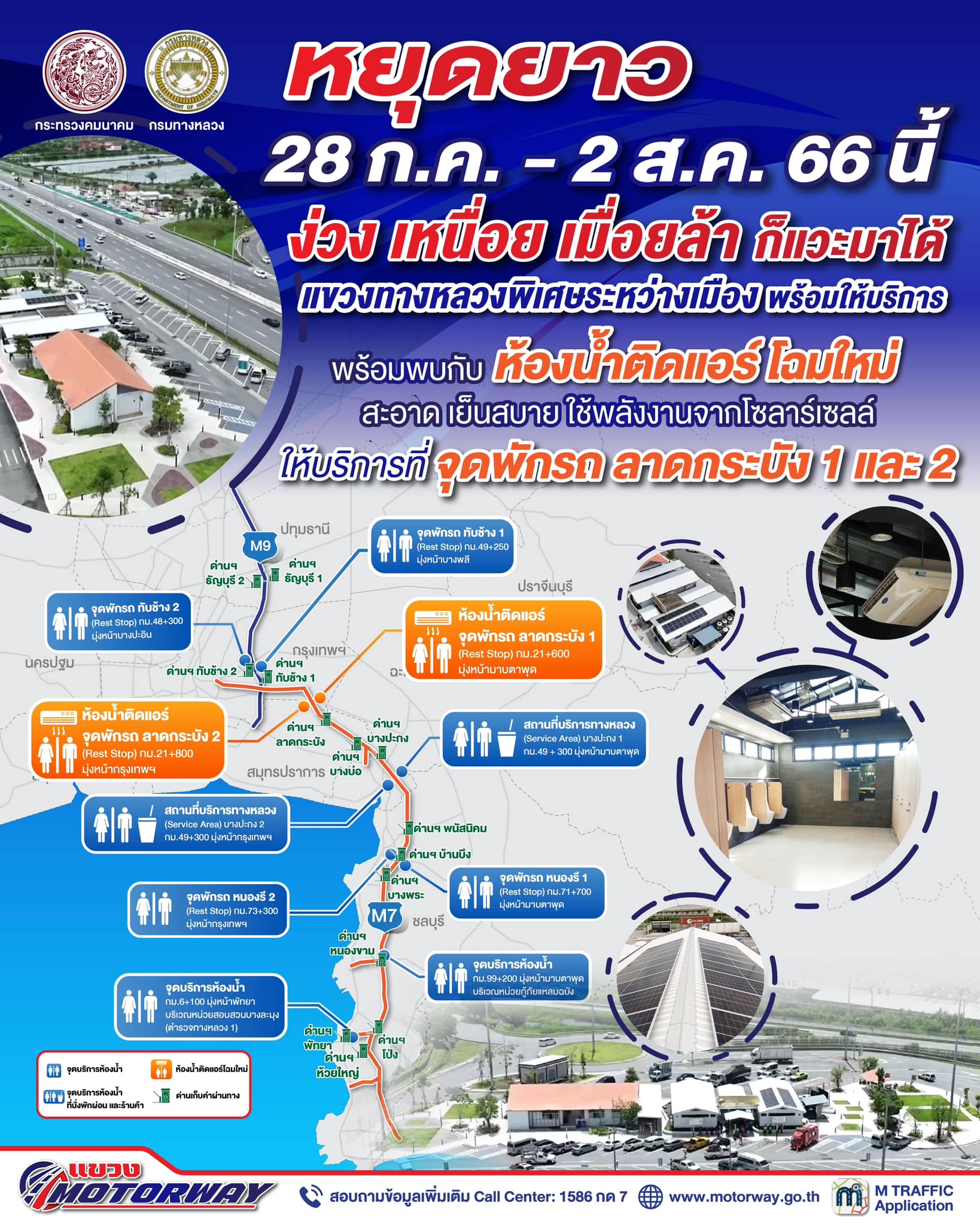 ข้อมูลข่าว : หยุดยาว 28 ก.ค.- 2 ส.ค. 66 นี้ ง่วง เหนื่อย เมื่อยล้า ก็แวะมาได้แขวงทางหลวงพิเศษระหว่างเมือง พร้อมให้บริการ?พร้อมพบกับ #ห้องน้ำติดแอร์โฉมใหม่