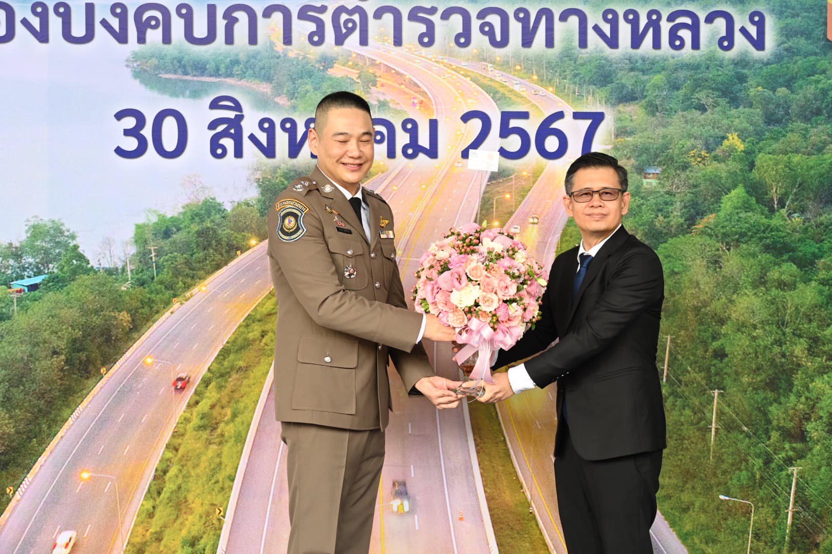 วันนี้ (30 สิงหาคม 2567) นายวีรพล วงศ์วิเชียร เลขานุการกรม กรมทางหลวง ผู้แทนอธิบดีกรมทางหลวง พร้อมด้วย นางสาวอัญชลี สาทะ ผู้อำนวยการกองการเงินและบัญชี และ นางภาษิตา บุรสมบูรณ์ ผู้แทนผู้อำนวยการกองการพัสดุ ร่วมแสดงความยินดี เนื่องในวันคล้ายวันสถาปนากองบังคับการตำรวจทางหลวง (บก.ทล.) ครบรอบ 64 ปี ณ กองบังคับการตำรวจทางหลวง เขตราชเทวี กรุงเทพมหานคร โดยมี พล.ต.ต.คงกฤษ เลิศสิทธิกุล ผู้บังคับการกองบังคับการตำรวจทางหลวง ให้การต้อนรับ