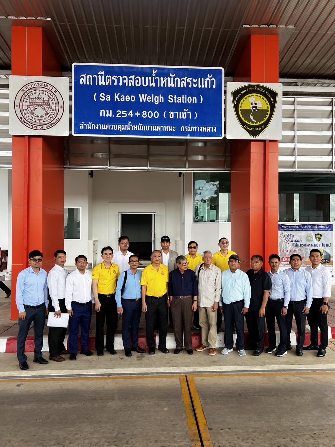 นายธานินทร์ ริรัตนพงษ์ วิศวกรใหญ่ด้านวางแผนและวางโครงการก่อสร้างเป็นประธานฝ่ายไทย ประชุม เรื่อง แนวทางการบริหารจัดการและควบคุมน้ำหนักรถบรรทุกและเยี่ยมชมการดำเนินงานของสถานีด่านชั่งน้ำหนักรถบรรทุก ณ ด่านชั่งน้ำหนักสระแก้วและด่านชั่งน้ำหนักวัฒนานคร จ.สระแก้ว